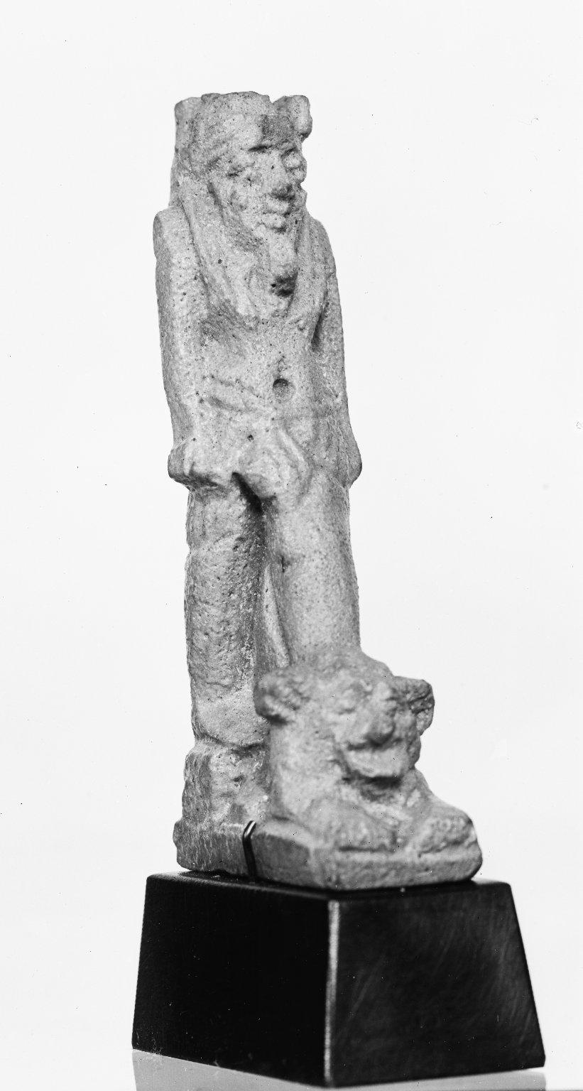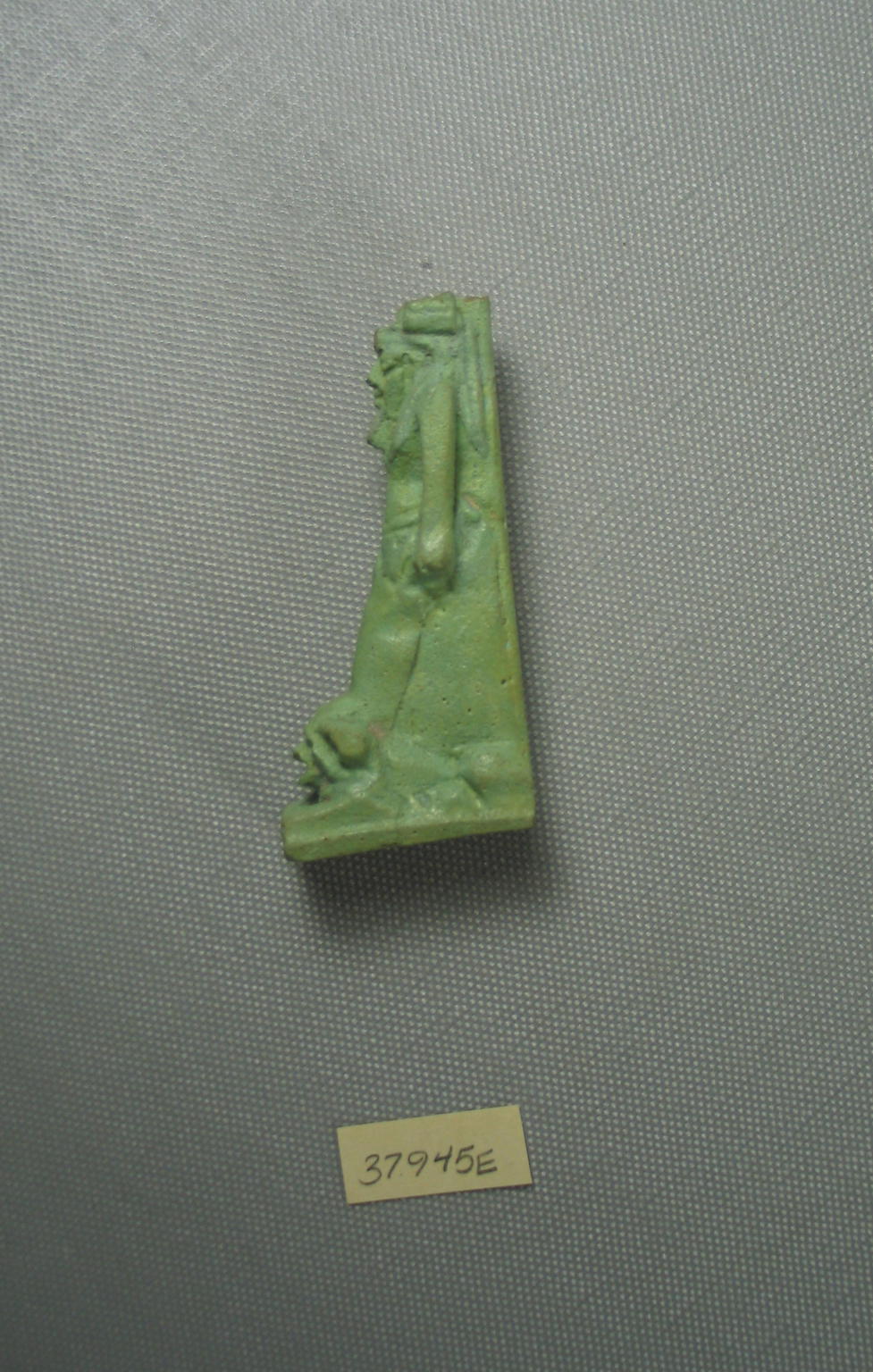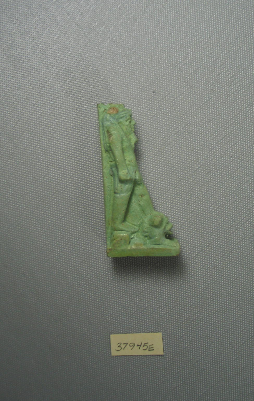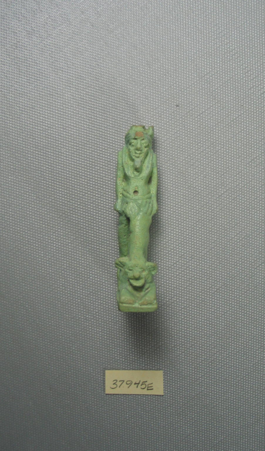 Figure of Nefertum, 664–343 B.C.E.. Faience, 2 15/16 x 3/4 x 1 3/8 in. (7.5 x 1.9 x 3.5 cm). Brooklyn Museum, Charles Edwin Wilbour Fund, 37.945E. (Photo: Brooklyn Museum)