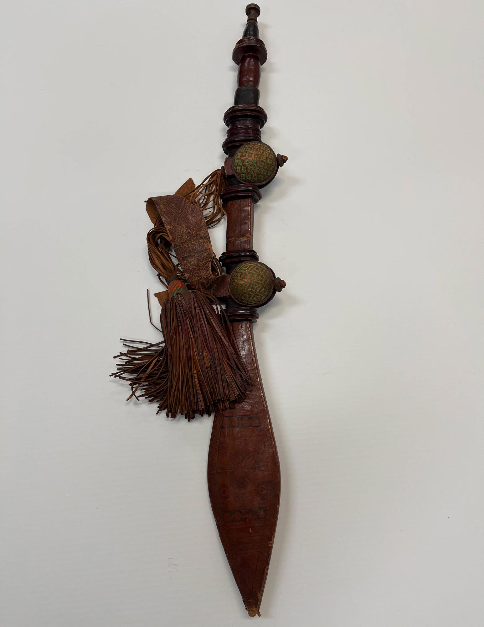 Manding. Sword with Scabbard, 20th century. Iron, leather, brass, 76.5 x 8.5 in. (194.3 x 21.6 cm). Brooklyn Museum, Brooklyn Museum Collection, X272a-b. (Photo: Brooklyn Museum)