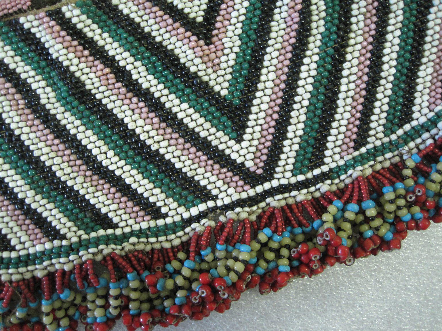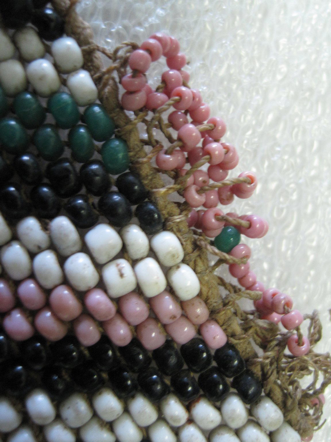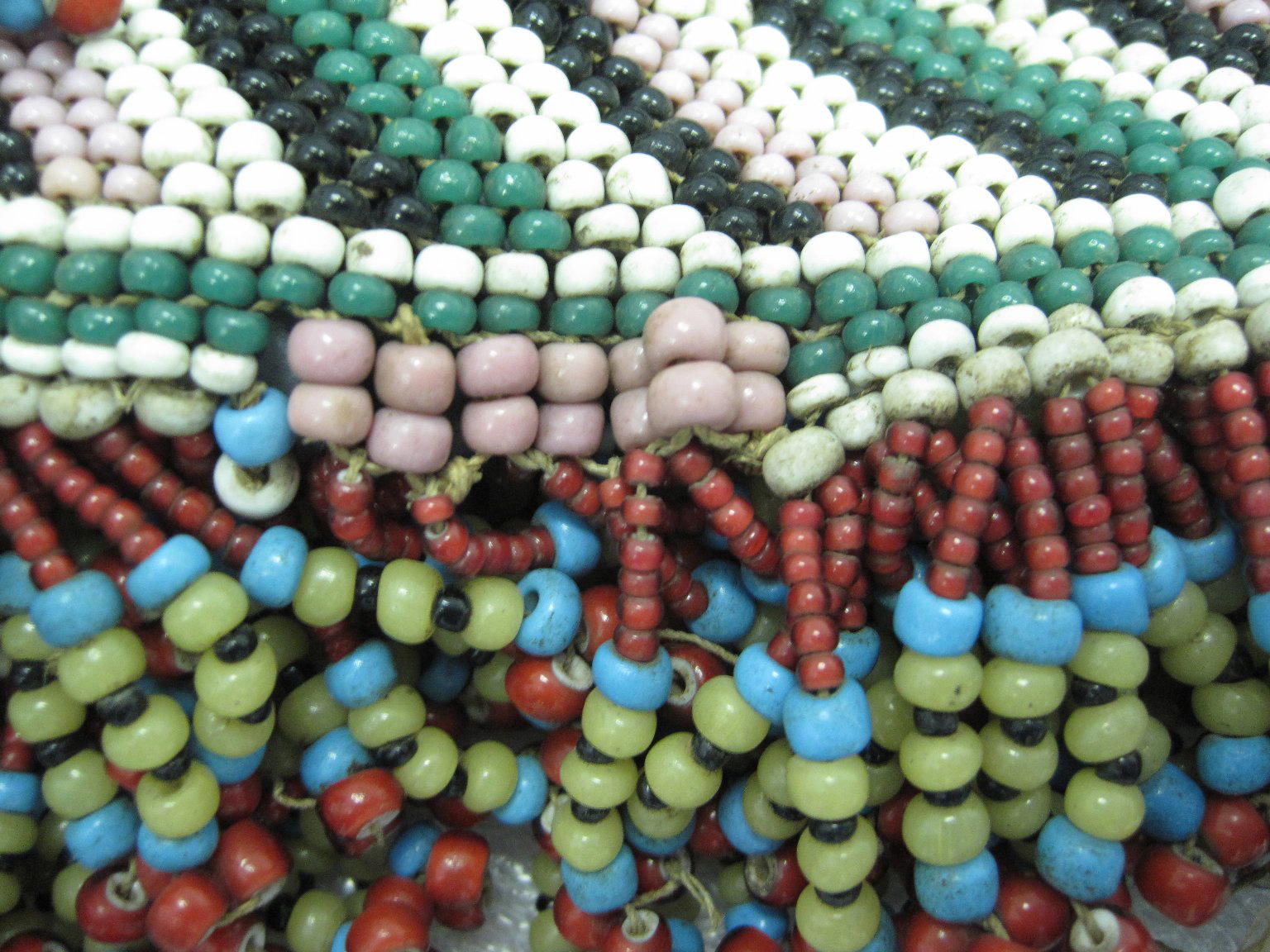 Glass seed beads, natural fiber, sinew