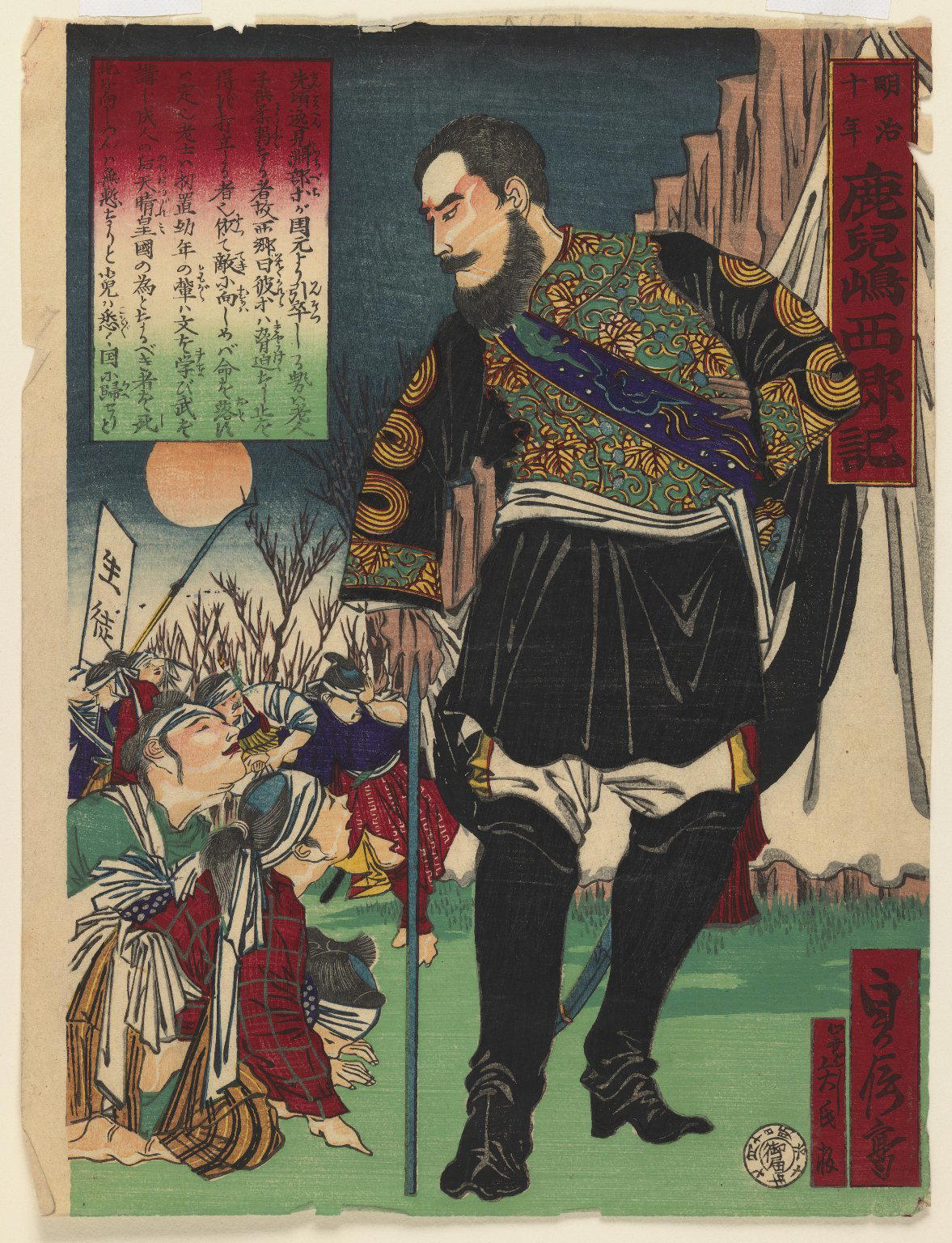 History of Saigō Takamori at Kagoshima, c. 1877 (Meiji 10). Color woodblock print on paper, 9 13/16 x 7 1/2 in. (24.9 x 19.1 cm). Brooklyn Museum, Brooklyn Museum Collection, X864.4. (Photo: Brooklyn Museum)