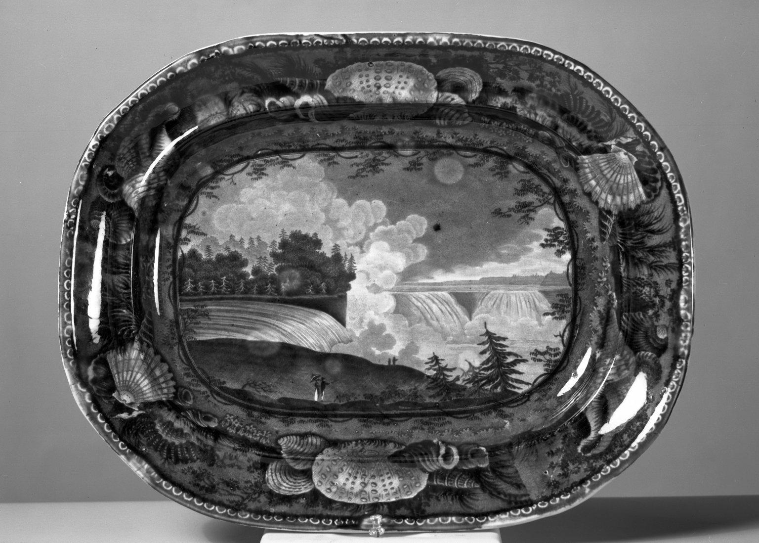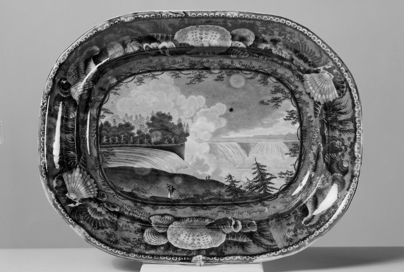 Enoch Wood & Sons (active 1818–1846). Platter, "Niagara from the American Side", ca. 1829–1846. Earthenware, 14 3/4 x 11 1/2 in. (37.5 x 29.2 cm). Brooklyn Museum, Gift of Mrs. William C. Esty, 63.186.17. (Photo: Brooklyn Museum)