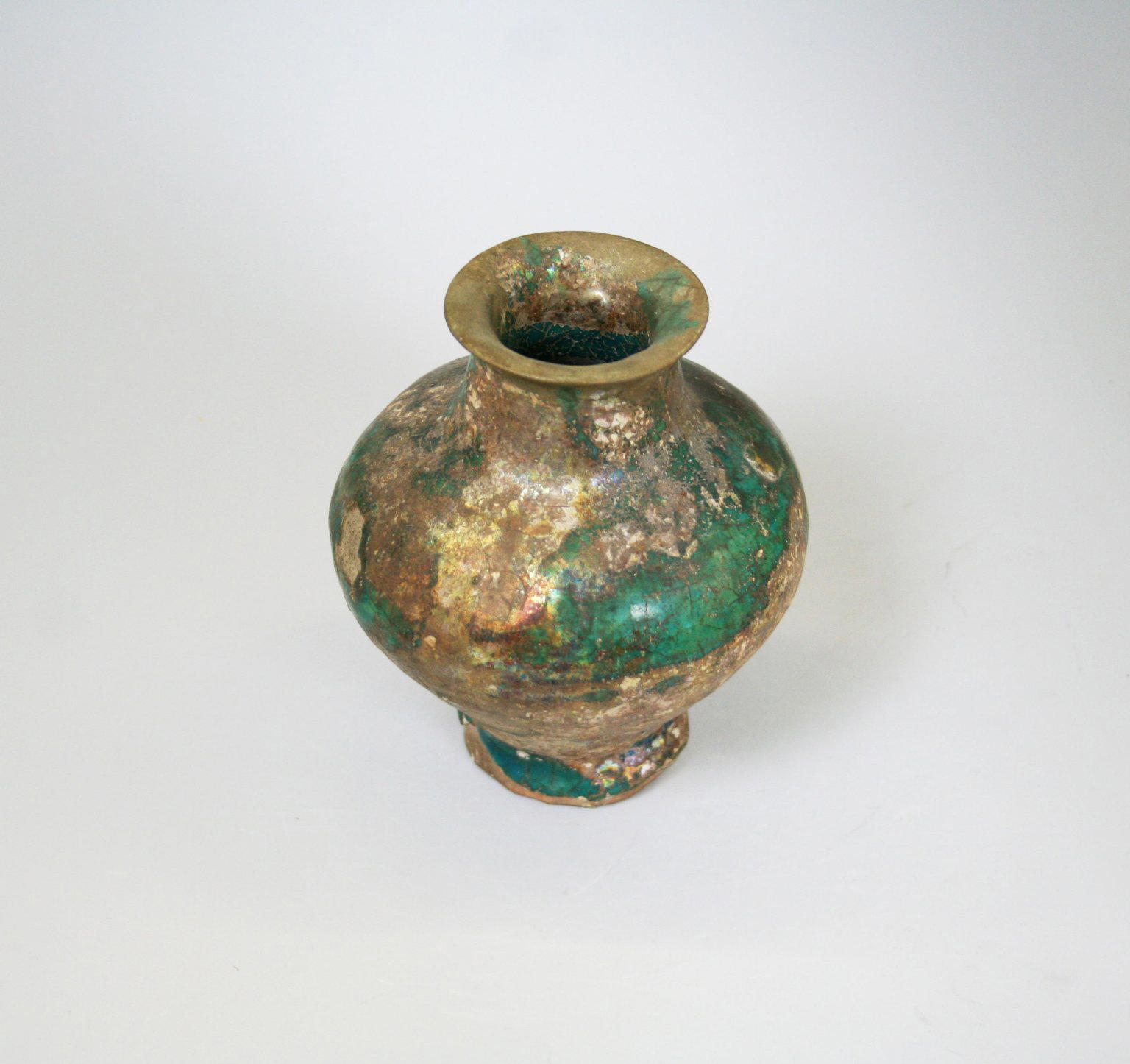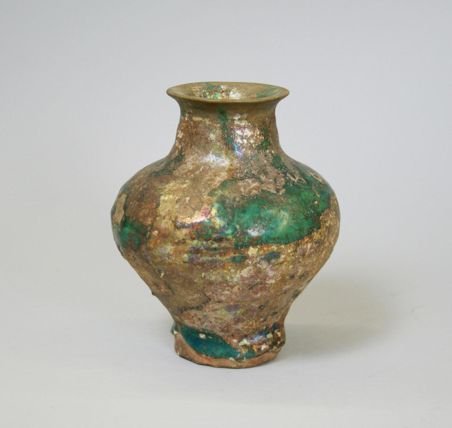 Vase, 12th century. Ceramic, green glaze, 5 1/16 x 4 1/8 in. (12.8 x 10.5 cm) Gr. Diam at mouth: 2 3/16 in. (5.5 cm) Diam. at foot: 1 7/8 in. (4.8 cm). Brooklyn Museum, Gift of the Ernest Erickson Foundation, Inc., 86.227.79. (Photo: Brooklyn Museum)