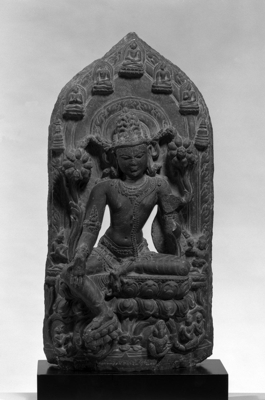 Stele with Seated Avalokiteshvara, ca. 11th–12th century. Dark gray stone, 19 3/4 x 9 7/8 in. (50.2 x 25.1 cm). Brooklyn Museum, Gift of Mr. and Mrs. Paul E. Manheim, 1994.199.4. (Photo: Brooklyn Museum)