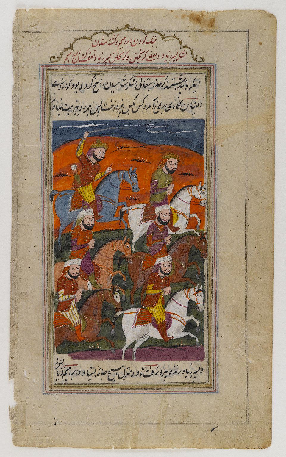 The Battle Ibrahim, Detached Leaf from the Epic of The Twelve Uprisings, 19th century. Opaque watercolor and gold on paper, 9 1/2 x 5 3/4 in. Brooklyn Museum, Gift of Dr. Bertram H. Schaffner, 1994.11.5. (Photo: Brooklyn Museum)