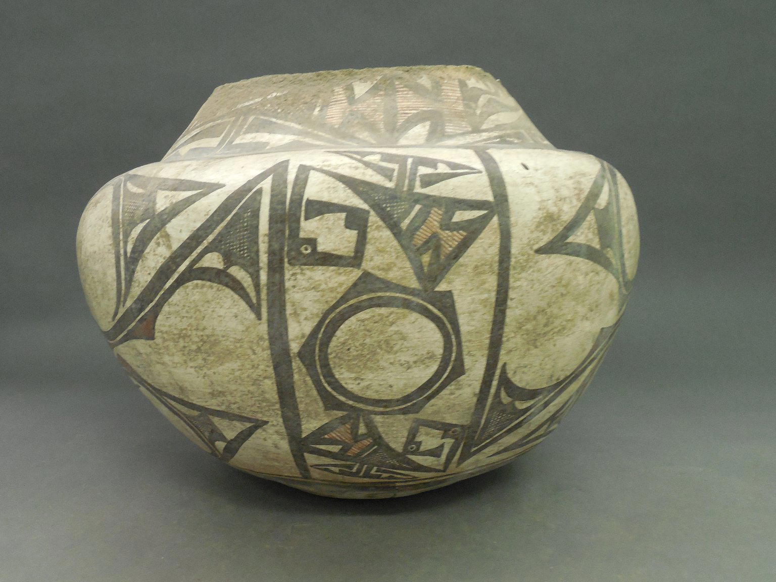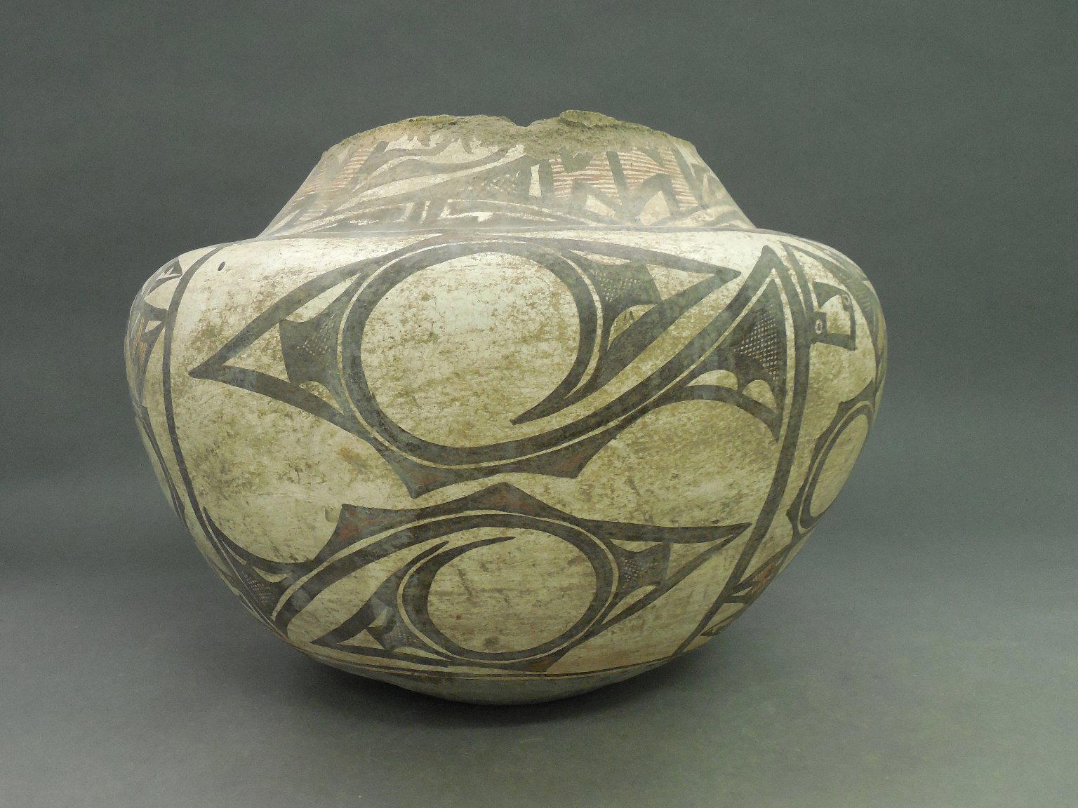 A:shiwi (Zuni Pueblo). Polychrome Water Jar (Tai-lai), 1868–1933. Clay, slip, pigment, 11 x 15 1/4 in. (28.0 x 39.0 cm). Brooklyn Museum, Museum Expedition 1904, Museum Collection Fund, 04.297.5244. (Photo: Brooklyn Museum)