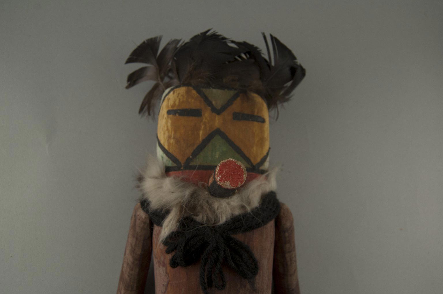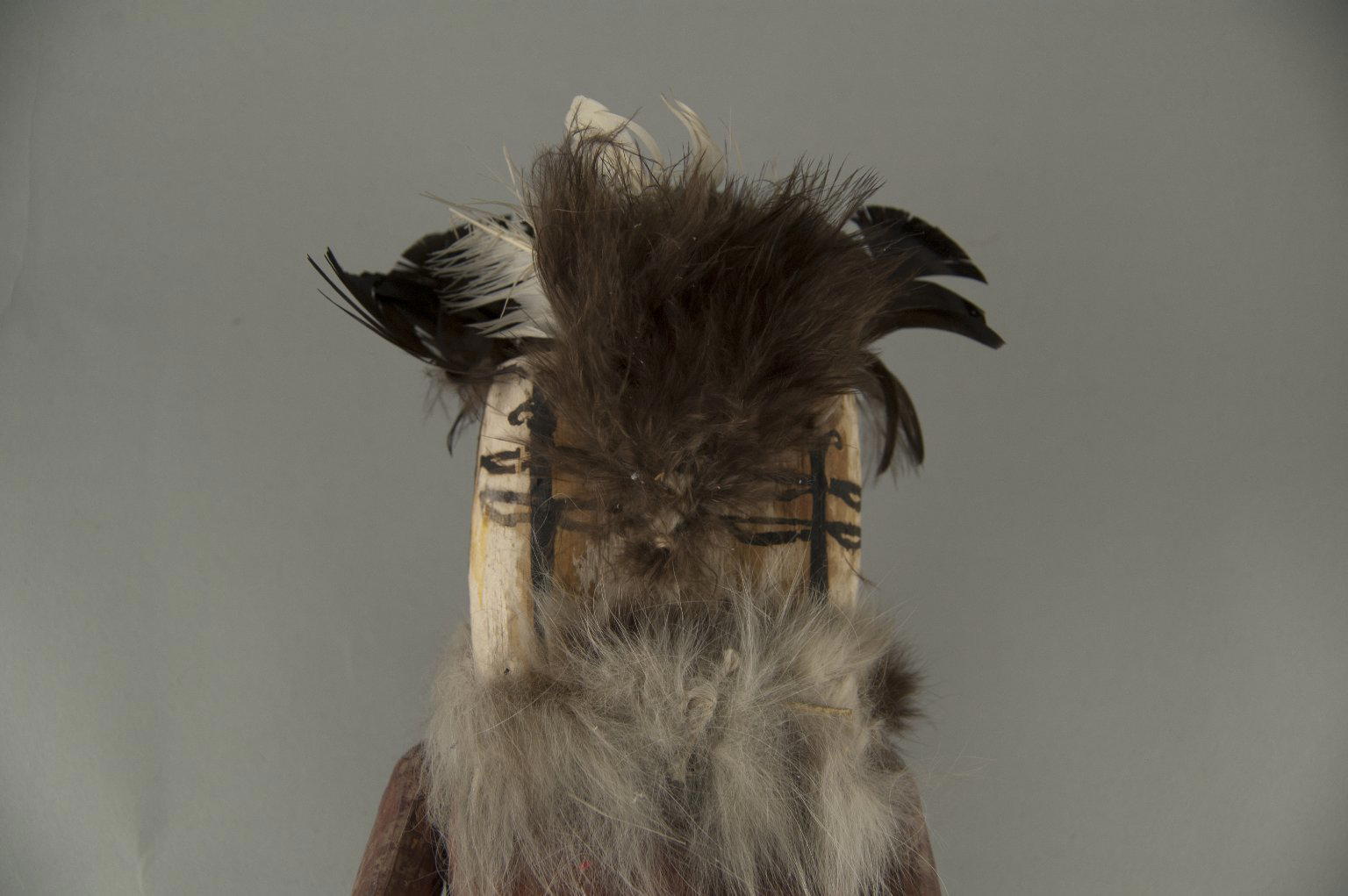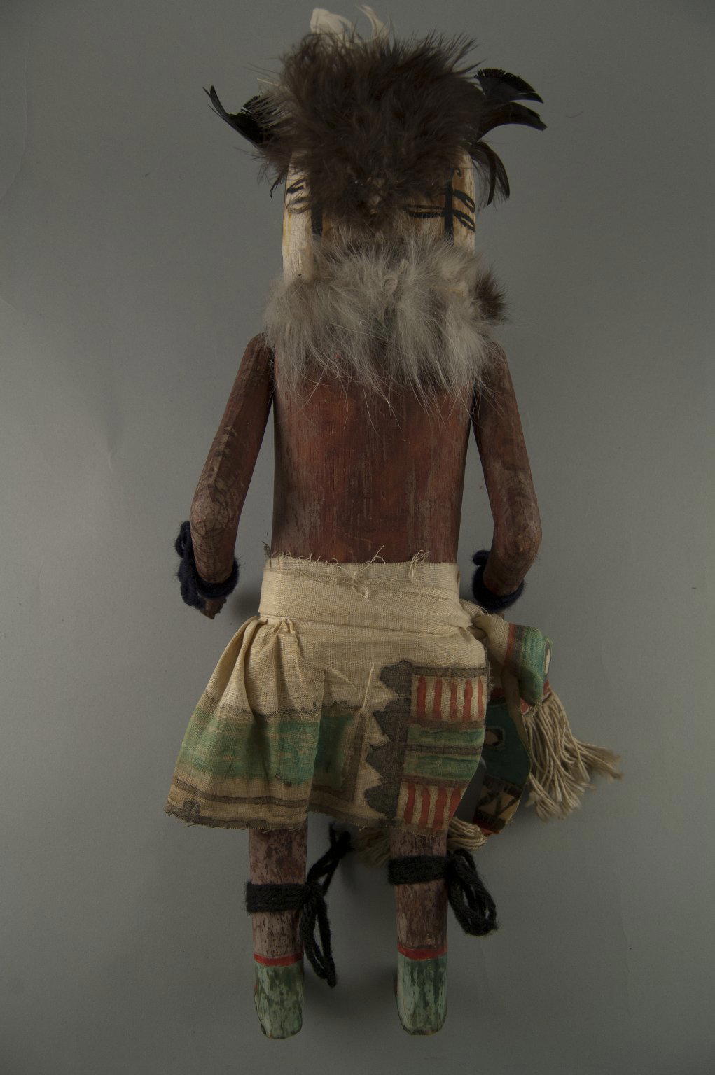 Mau-i (A:shiwi (Zuni Pueblo)); (assistant) Tsu-na (A:shiwi (Zuni Pueblo)). Kachina Doll (Panek Thluptse), late 19th–early 20th century. Wood, pigment, feathers, fur, cotton, 14 15/16 x 5 7/16 x 3 7/8in. (38 x 13.8 x 9.8cm) Other: 14 15/16 x 5 7/16 x 3 7/8in. (38 x 13.8 x 9.8cm). Brooklyn Museum, Museum Expedition 1904, Museum Collection Fund, 04.297.5334. (Photo: Brooklyn Museum)