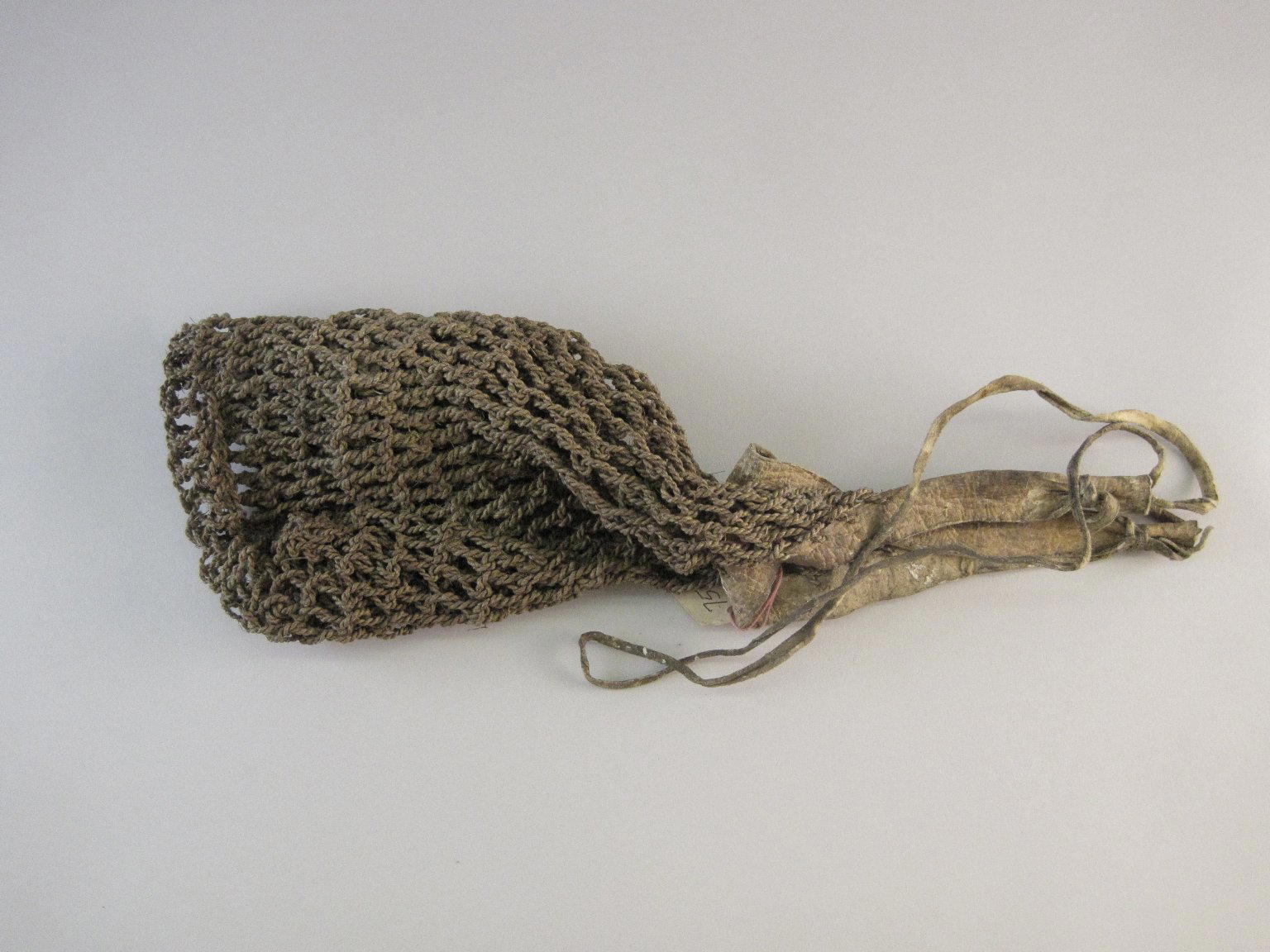 Possibly Yurok. Net Bag, Iris, deerskin, 11 7/16 x 7 11/16 in. (29.0 x 19.5 cm). Brooklyn Museum, Museum Expedition 1905, Museum Collection Fund, 05.588.7596. (Photo: Brooklyn Museum)