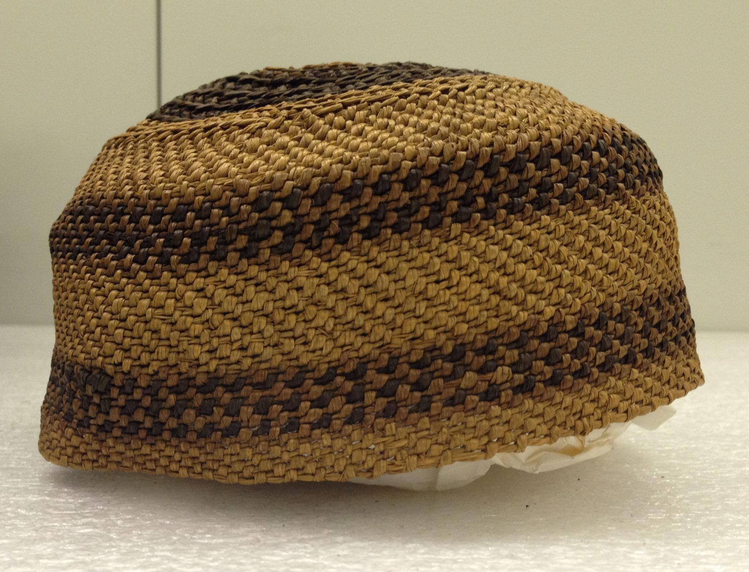 Yombe. Cap, late 19th century. Raffia, height: 2 7/8 in. (7.3 cm); diameter: 6 1/4 in. (15.9 cm). Brooklyn Museum, Brooklyn Museum Collection, X1124.2. (Photo: Brooklyn Museum)