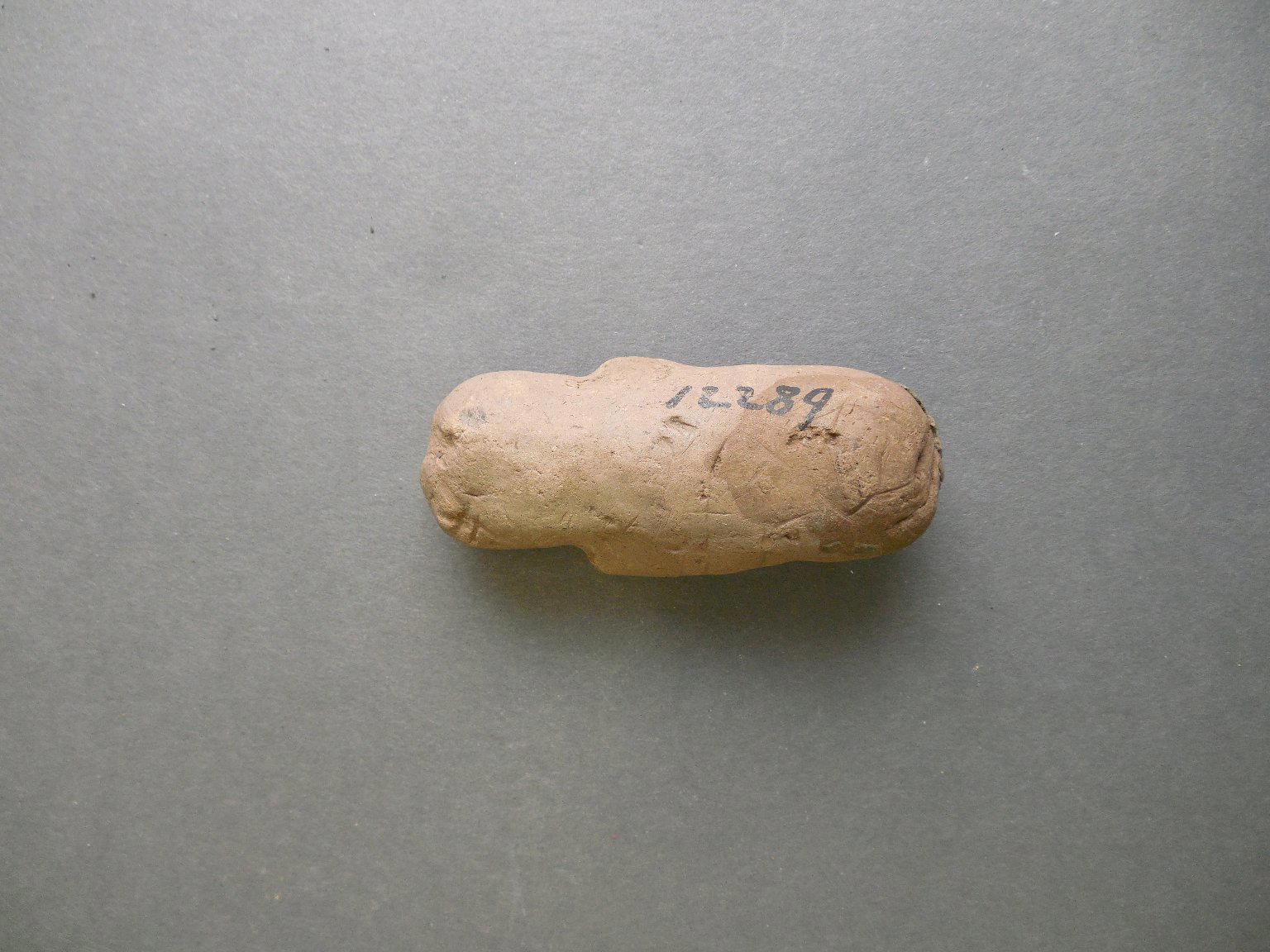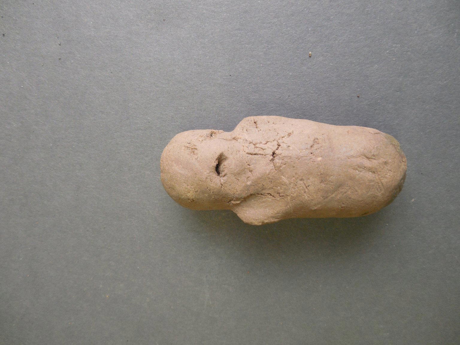 Southwest (unidentified). Fetish, 700 B.C.E.–700 C.E., Basketmaker II–III (probably). Clay, 2 3/4 × 1 1/8 × 3/4 in. (7 × 2.9 × 1.9 cm). Brooklyn Museum, Museum Expedition 1903, Purchased with funds given by A. Augustus Healy and George Foster Peabody, 03.325.12289. (Photo: Brooklyn Museum)