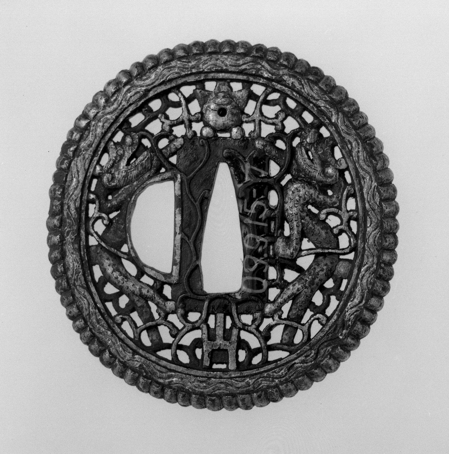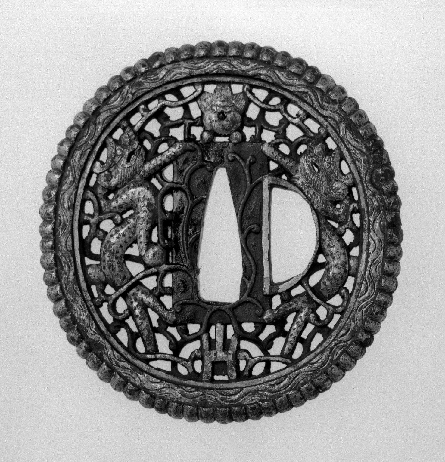 Sword Guard, 18th century (possibly). Iron with gilt areas, gold, 1/4 x 2 3/4 in. (0.6 x 7 cm). Brooklyn Museum, Museum Expedition 1909, Purchased with funds given by Thomas T. Barr, E. LeGrand Beers, Carll H. de Silver, Herman B. Stutzer, Colonel Robert B. Woodward and the Museum Collection Fund, 09.915.7. (Photo: Brooklyn Museum)