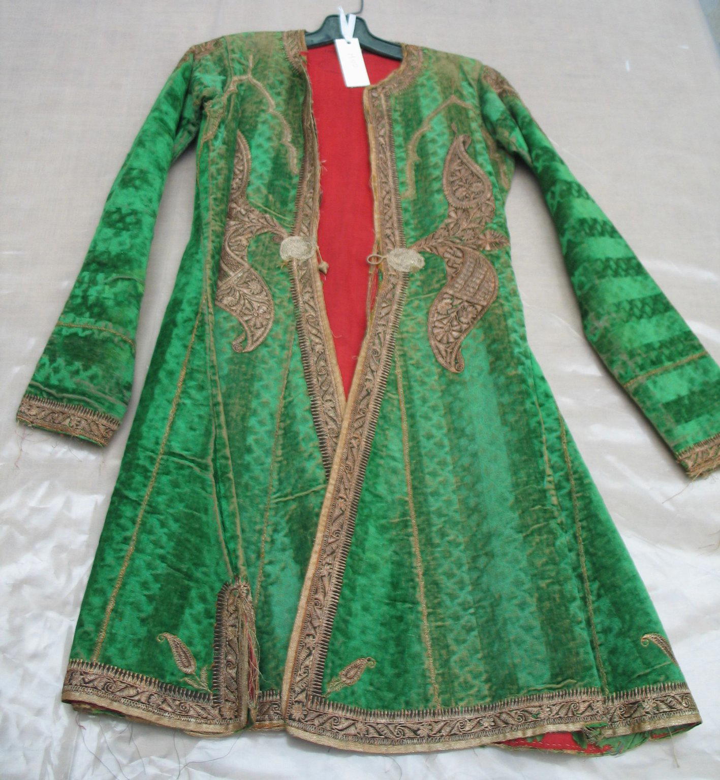 Youth's Green Coat, Velvet, Shoulder to Shoulder: 35 13/16 x 13 3/4 in. (91 x 35 cm) sleeves: 24 7/16 in. (62 cm). Brooklyn Museum, Museum Expedition 1913-1914, Museum Collection Fund, 14.510. (Photo: Brooklyn Museum)