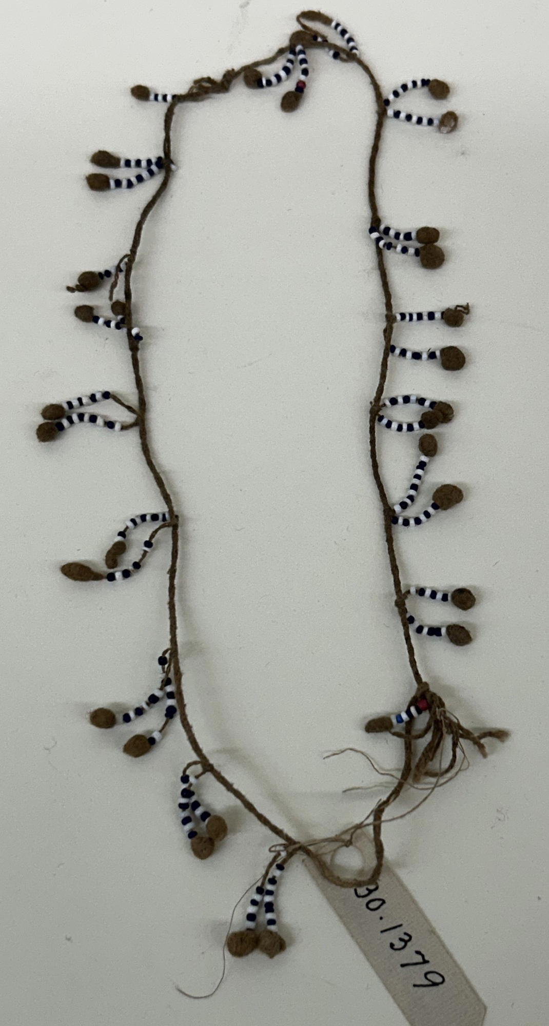 Pishanko. Necklace, early 20th century. Cotton, glass beads, 2 3/4 × 1/8 × 8 1/2 in. (7 × 0.3 × 21.6 cm). Brooklyn Museum, Museum Expedition 1930, Robert B. Woodward Memorial Fund and the Museum Collection Fund, 30.1379. (Photo: Brooklyn Museum)