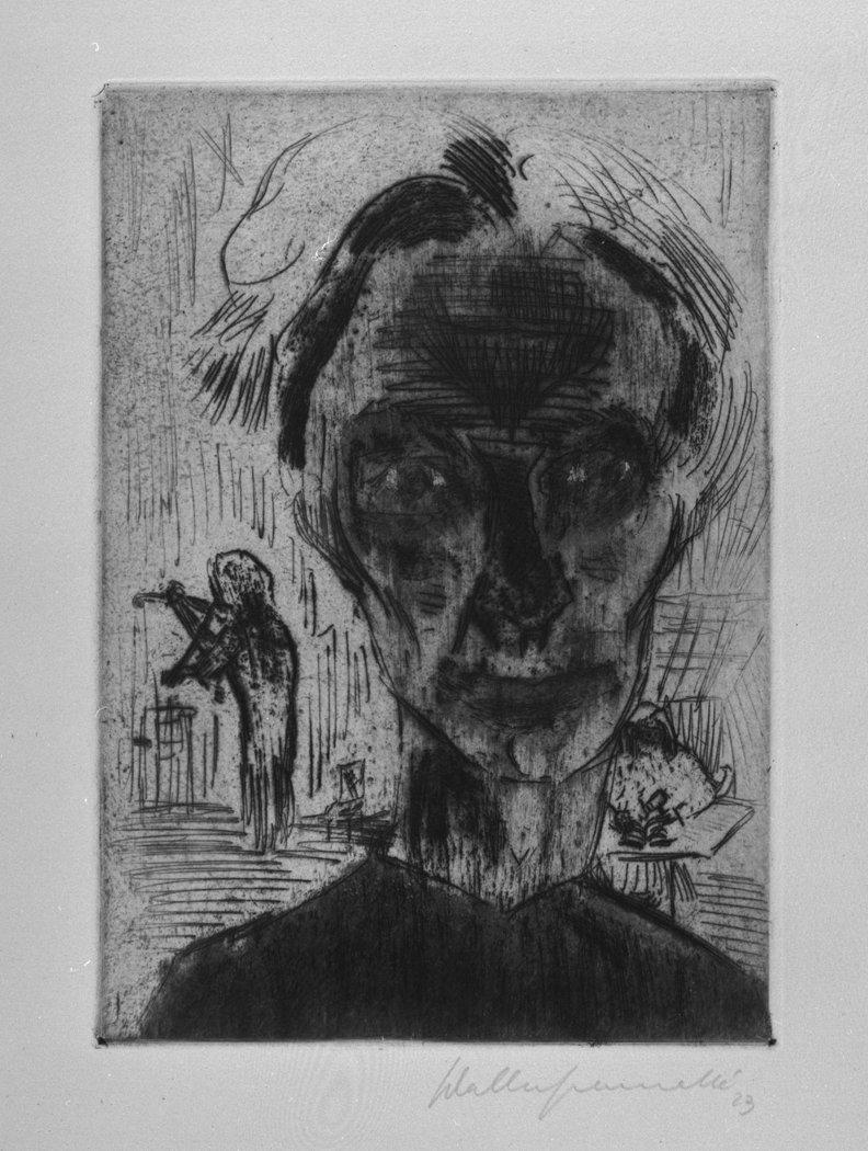 Walter Gramatté (German, 1897–1929). Man in Room: Self Portrait, 1923. Etching, sheet: 21 x 15 in. plate: 12 x 8 1/2 in. Brooklyn Museum, Alfred T. White Fund, 1990.214. (Photo: Brooklyn Museum)