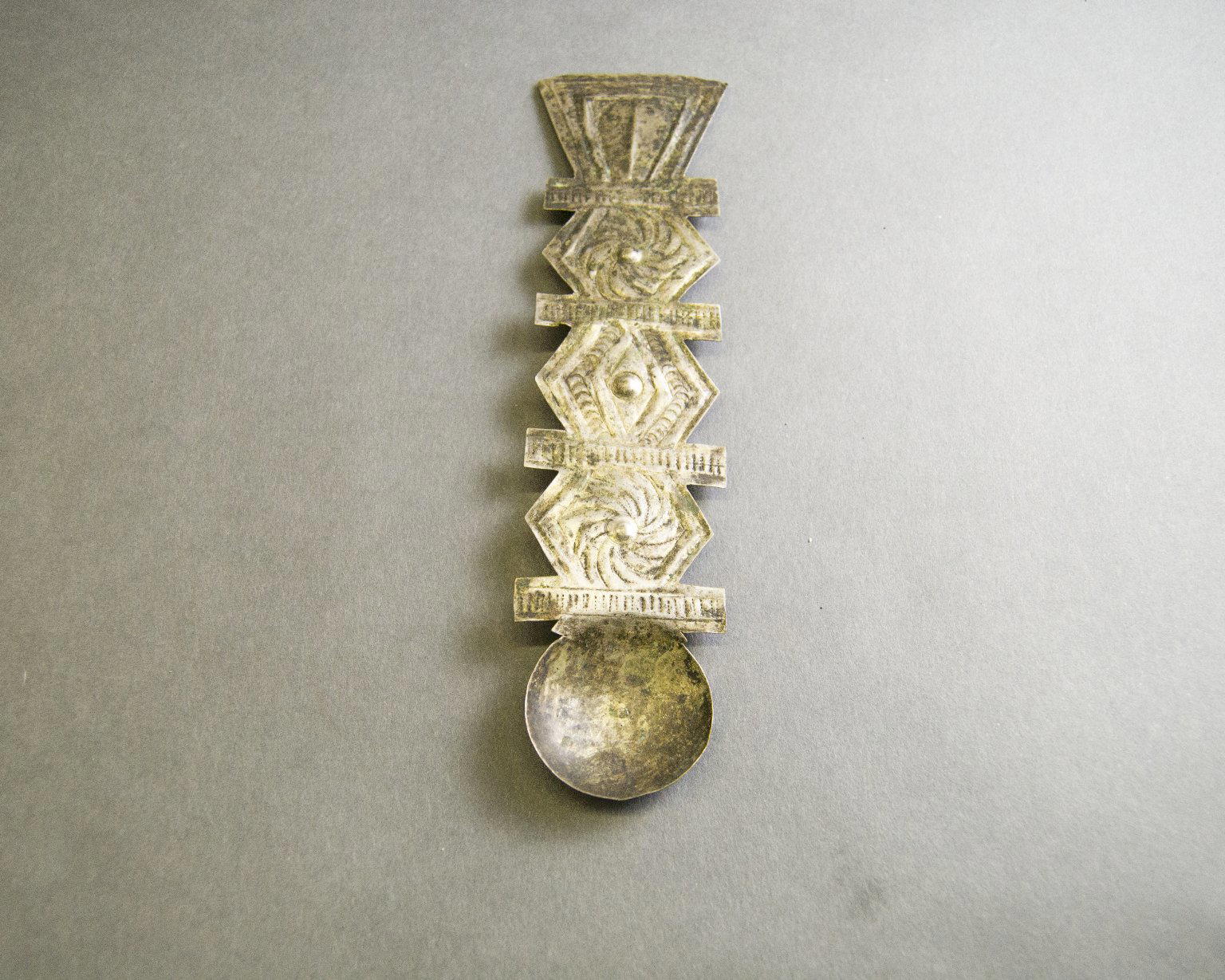 Akan. Spoon, 19th century. Probably silver, length: 10 in. (length: 18.7 cm diameter: 3.7 cm). Brooklyn Museum, Gift of Shirley B. Williams, 1990.221.21. (Photo: Brooklyn Museum)