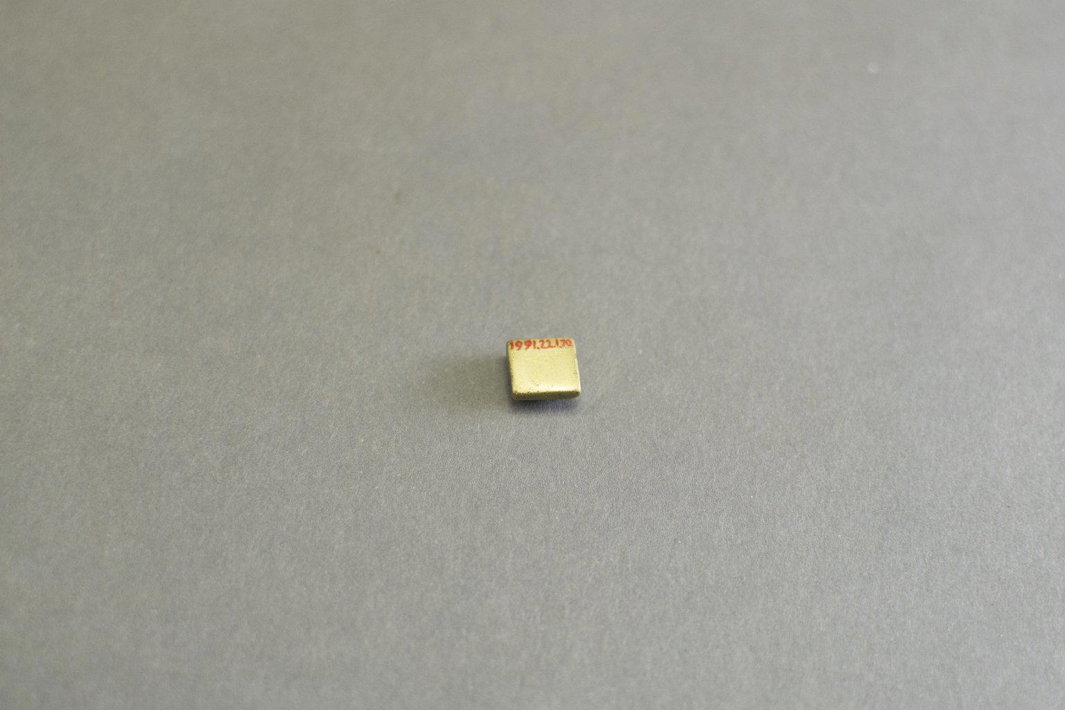Akan. Gold-weight (abrammuo): geometric, ca. 1700–1900. Copper alloy, width: 1 1/2 in. (height: .3 cm length: 1.1 cm width: 1.0 cm). Brooklyn Museum, Gift of Shirley B. Williams, 1990.221.70. (Photo: Brooklyn Museum)