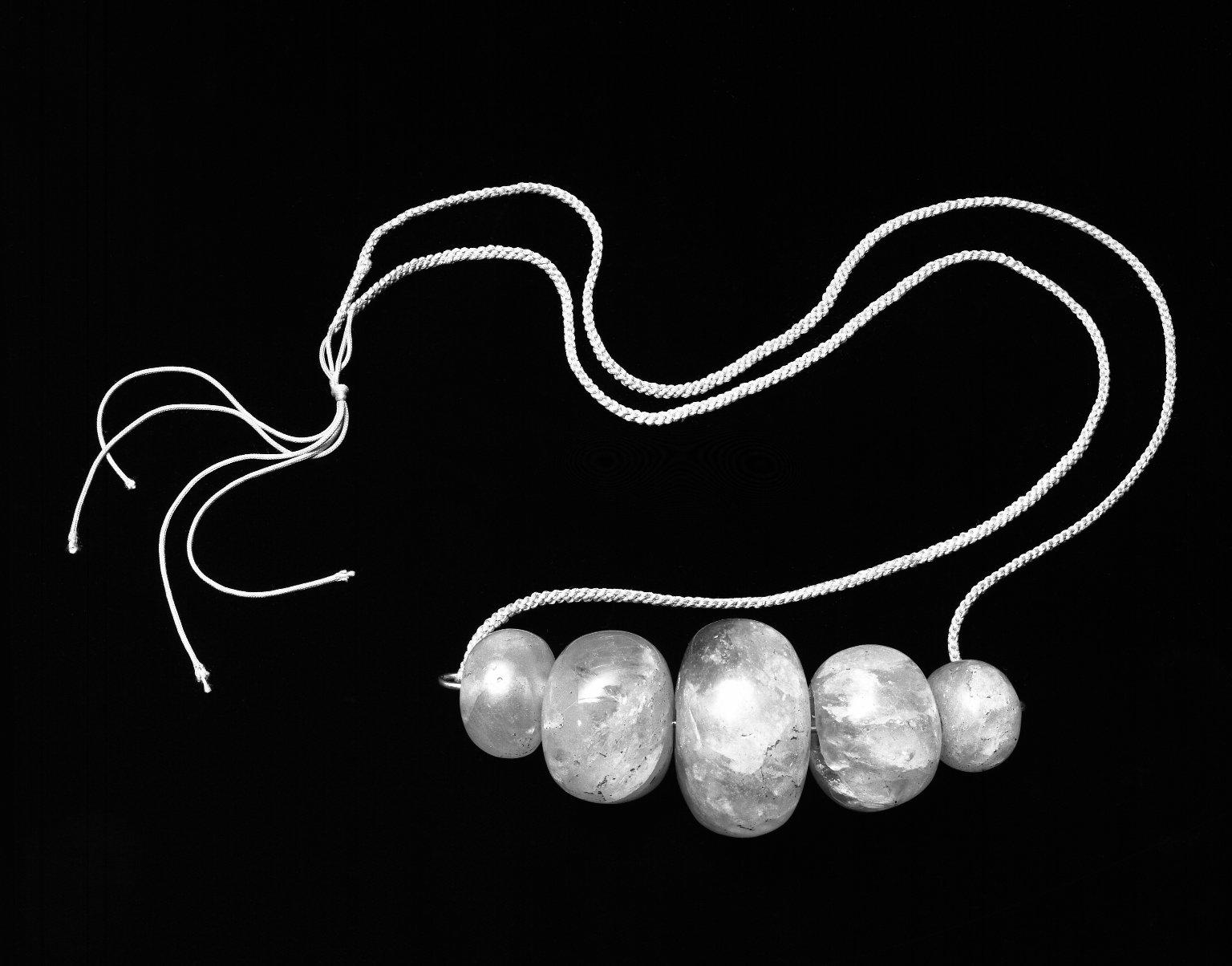 Necklace, ca. 200 B.C.E.. Crystal, gold cotton cord, length of beads: 4 1/2 in. braided cord: 16 in. each. Brooklyn Museum, Bequest of Mrs. Carl L. Selden, 1996.116.13. (Photo: Brooklyn Museum)