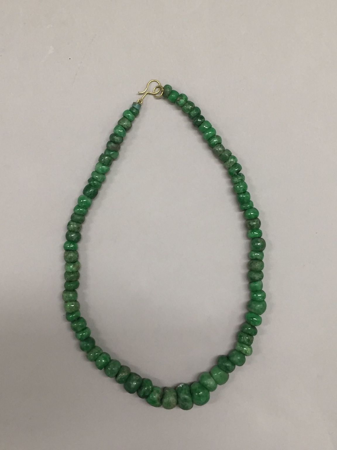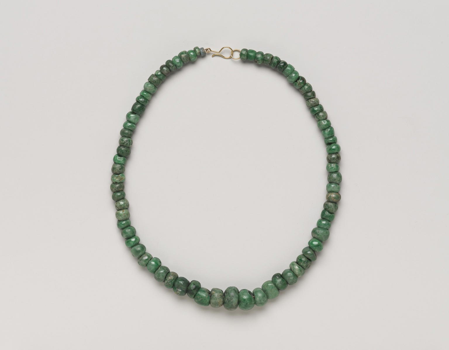 Maya. Necklace, 300–600. Jade beads (prehispanic), metal chain and clasp (modern), 3/8 × 3/8 × 16 in. (1 × 1 × 40.6 cm). Brooklyn Museum, Bequest of Mrs. Carl L. Selden, 1996.116.4.