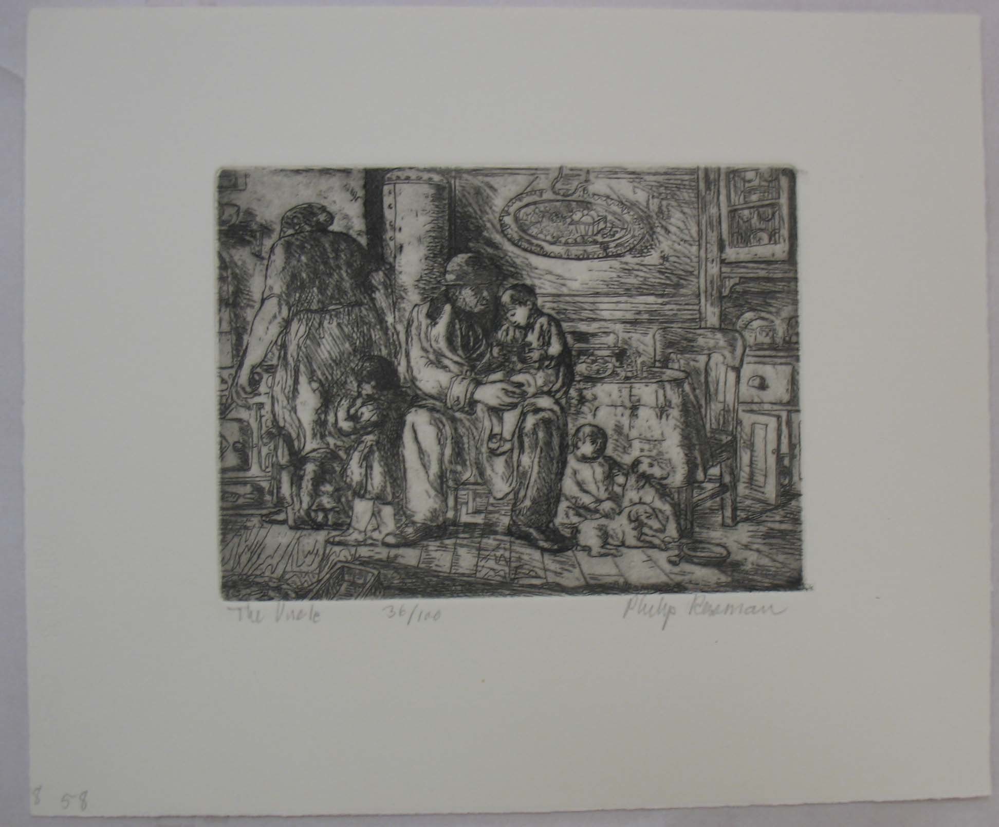 Philip Reisman (American, 1904–1992). Uncle, n.d.. Etching on paper, sheet: 9 1/2 x 11 7/16 in. (24.1 x 29 cm) image: 5 1/16 x 6 7/8 in. (12.8 x 17.4 cm). Brooklyn Museum, Gift of Louise Reisman, 1993.39.56. © Estate of Philip Reisman. (Photo: Brooklyn Museum)