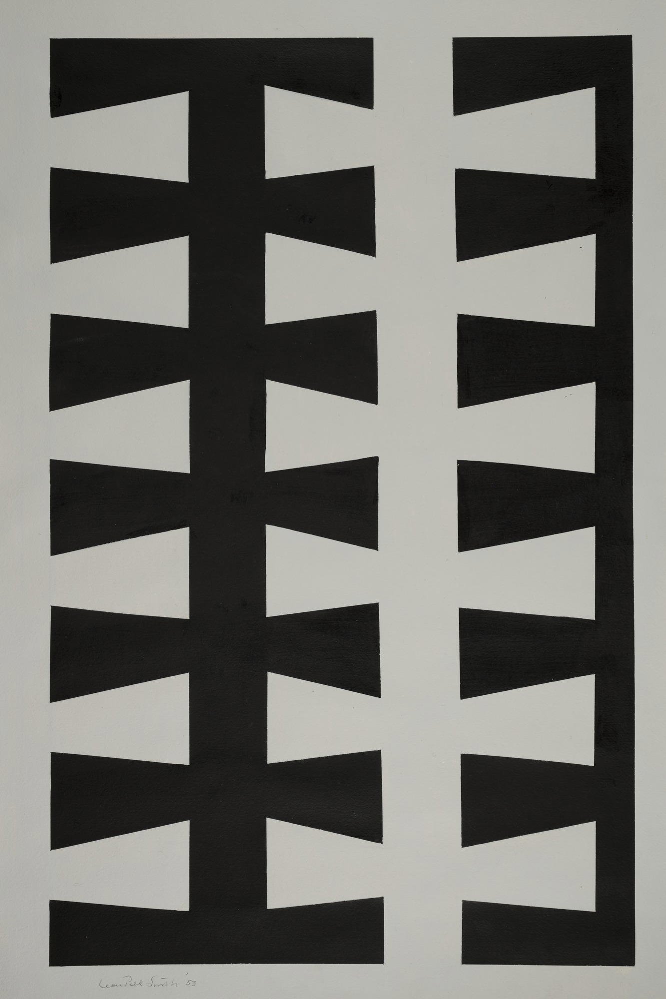 Leon Polk Smith (American, 1906–1996). Untitled, 1953. Ink or opaque watercolor on painted paper, 40 3/4 × 25 3/4 in. (103.5 × 65.4 cm). Brooklyn Museum, Bequest of Leon Polk Smith, 2011.27.2. © Leon Polk Smith Foundation. (Photo: Brooklyn Museum)