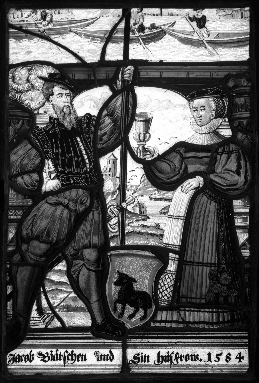 Man and Woman with Uncovered Chalice, Stained glass, 13 1/2 x 9 1/4 in. (34.3 x 23.5 cm). Brooklyn Museum, Gift of Mary Babbott Ladd, Lydia Babbott Stokes, Helen Babbott MacDonald, and Dr. Frank L. Babbott, Jr. in memory of their father, Frank L. Babbott, 34.6090.9. (Photo: Brooklyn Museum)