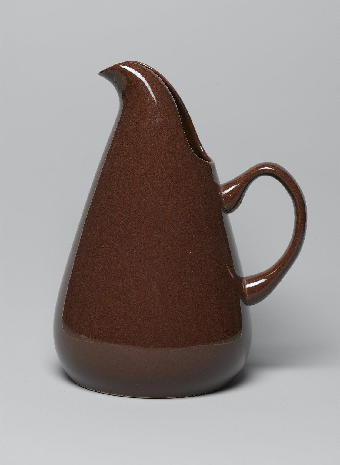Russel Wright (American, 1904–1976); Steubenville Pottery. Pitcher, American Modern Pattern, Designed 1937; manufactured 1939–1959. Earthenware, 10 5/8 x 6 7/8 x 8 1/4 in. (27 x 17.5 x 21 cm). Brooklyn Museum, Gift of Paul F. Walter, 83.108.44. (Photo: Brooklyn Museum)