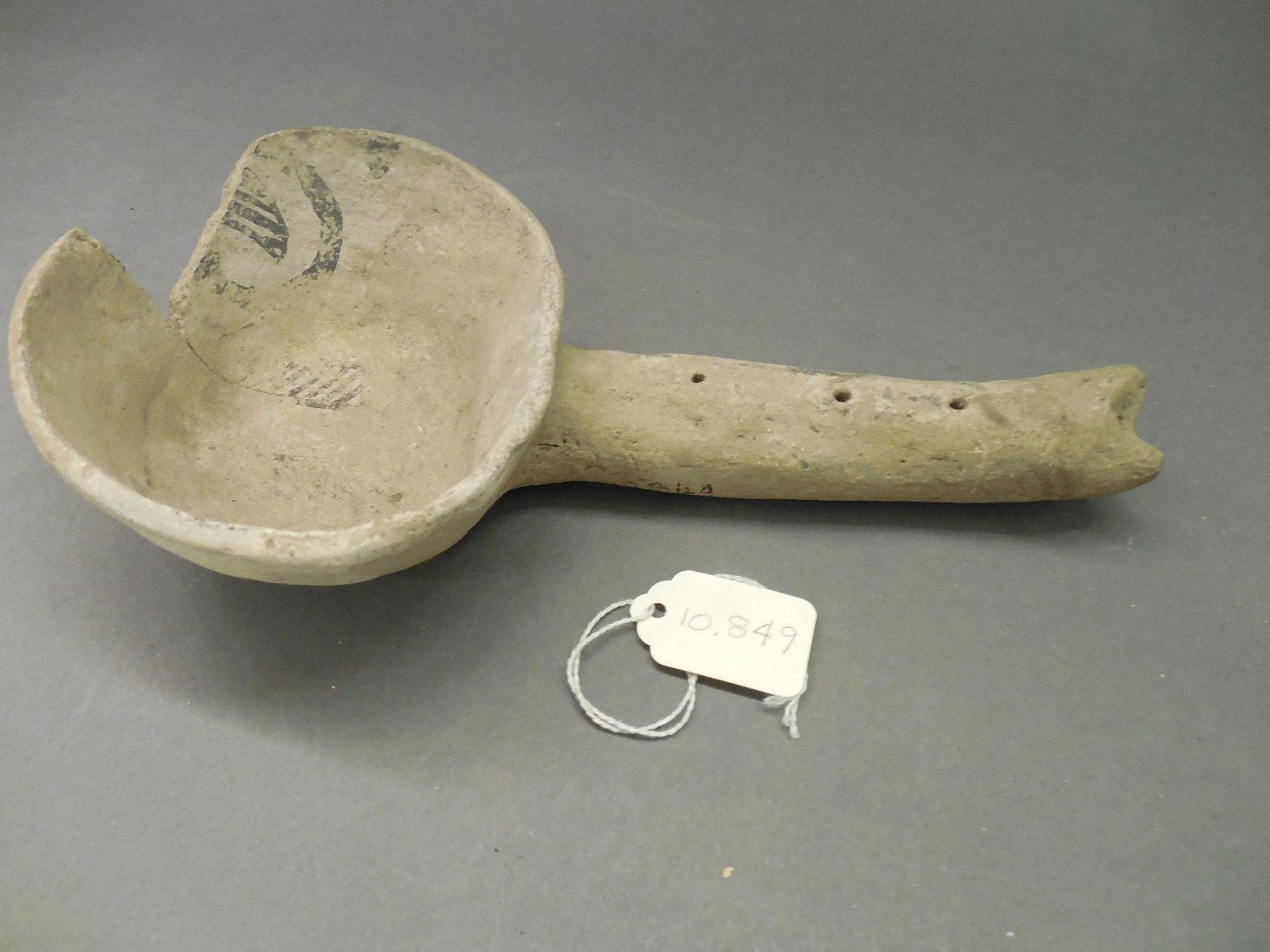 Ancestral Pueblo. Ladle, Probably 900–1100, Pueblo II. Clay, slip, pigment, 9 1/2 x 2 x 4 3/4 in. (24.1 x 5.1 x 12.1 cm). Brooklyn Museum, Museum Expedition 1903, Purchased with funds given by A. Augustus Healy and George Foster Peabody, 03.325.10849. (Photo: Brooklyn Museum)