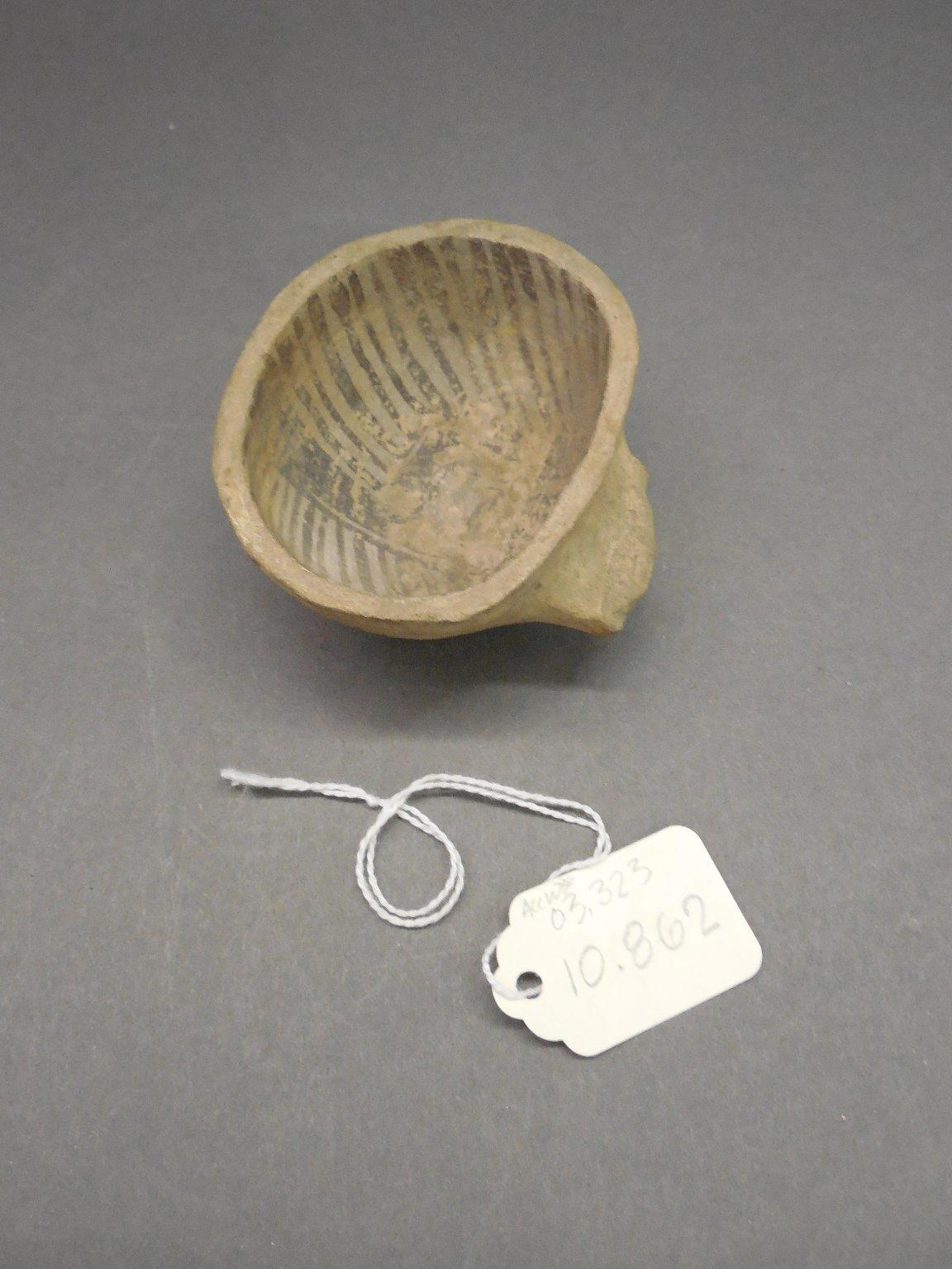 Ancestral Pueblo. Ladle Fragment, Probably 1070–1300, Pueblo III. Clay, slip, pigment, 2 1/8 x 2 3/4 x 1 1/8 in. (5.4 x 7 x 2.9 cm). Brooklyn Museum, Museum Expedition 1903, Purchased with funds given by A. Augustus Healy and George Foster Peabody, 03.325.10862. (Photo: Brooklyn Museum)