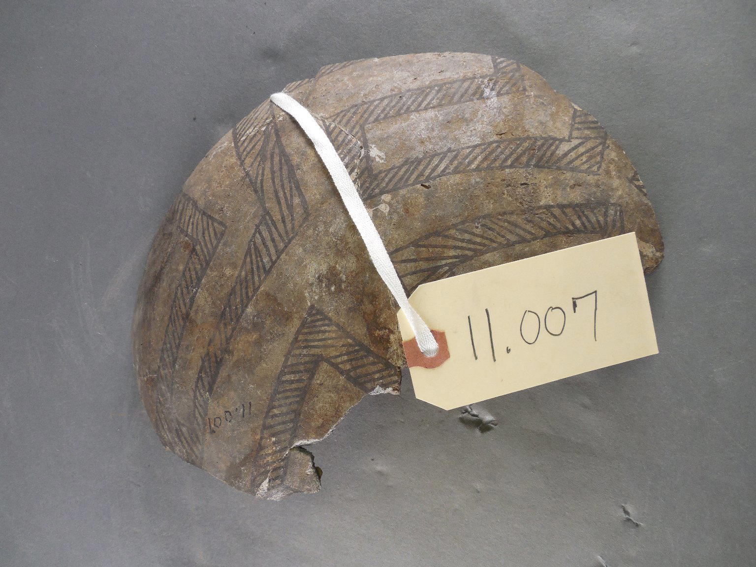 Ancestral Pueblo. Bowl Fragment, Probably 1000–1100, Pueblo II. Clay, 9 1/2 x 5 1/2 in. (24.1 x 14 cm). Brooklyn Museum, Museum Expedition 1903, Purchased with funds given by A. Augustus Healy and George Foster Peabody, 03.325.11007. (Photo: Brooklyn Museum)