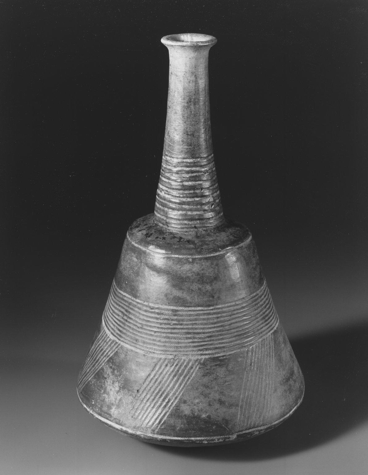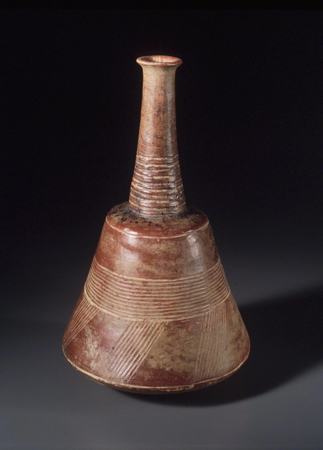 Bottle, Terracotta, slip, height: 13 1/2 in. (34.3 cm) diameter: 8 1/4 in. (21 cm). Brooklyn Museum, Gift of Bill and Gale Simmons, 1994.144.5. (Photo: Brooklyn Museum)