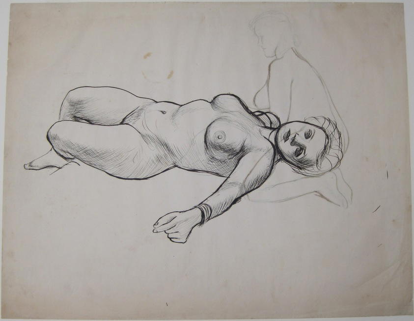 James Brooks (American, 1906–1992). [Untitled] (Recto: Nude Female; Verso: Kneeling Nude), n.d.. Ink on paper, Sheet (recto): 18 13/16 x 23 15/16 in. (47.8 x 60.8 cm) Sheet (verso): 18 13/16 x 23 15/16 in. (47.8 x 60.8 cm). Brooklyn Museum, Gift of Charlotte Park Brooks in memory of her husband, James David Brooks, 1996.54.33a-b. (Photo: Brooklyn Museum)