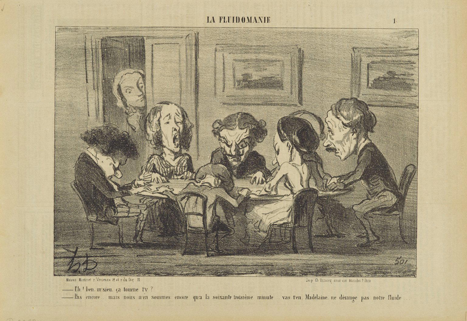 Honoré Daumier (Marseille, France, 1808–1879, Valmondois, France). Eh! B(i)en M'sieu, Ça Tourne T'y?..., May 16–17, 1853. Lithograph on newsprint, Sheet: 9 9/16 x 14 in. (24.3 x 35.6 cm) Image: 7 1/4 x 10 3/8 in. (18.4 x 26.4 cm). Brooklyn Museum, Gift of Shelley and David Garfinkel, 1996.225.82. (Photo: Brooklyn Museum)