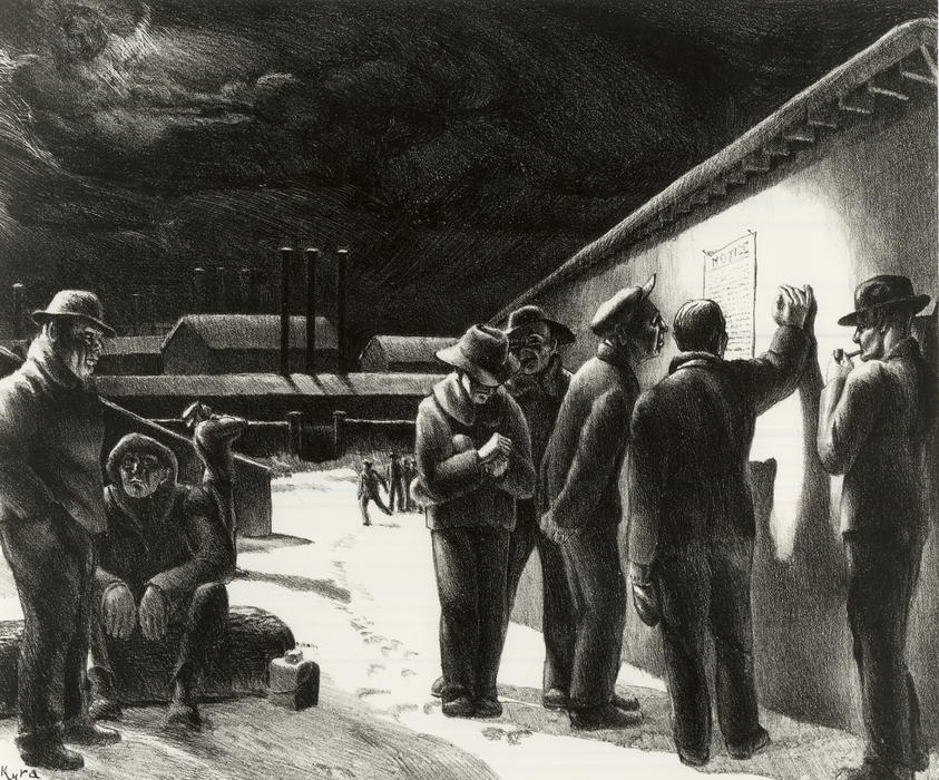 Kyra Markham (American, 1891–1967). Lockout, 1937. Lithograph on moderately thick, cream-colored , textured wove paper, Sheet: 11 7/8 x 15 15/16 in. (30.2 x 40.5 cm) Image: 10 x 12 1/16 in. (25.4 x 30.6 cm). Brooklyn Museum, Alfred T. White Fund, 1997.39. (Photo: Brooklyn Museum)