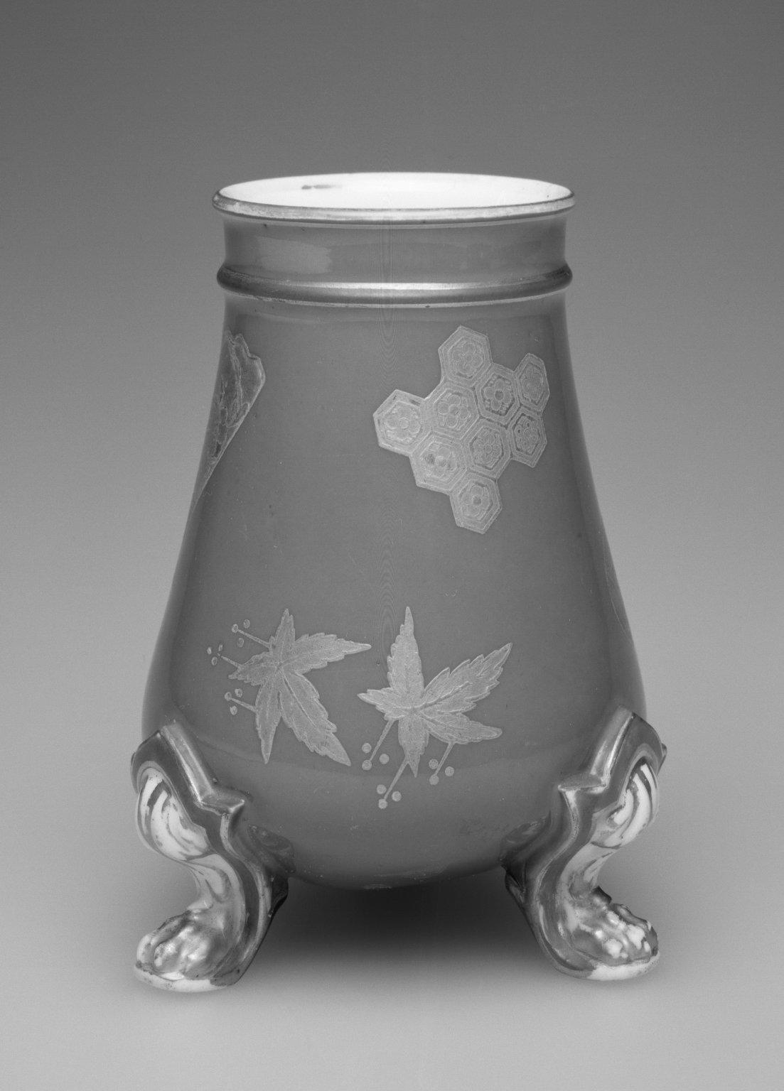 Worcester Royal Porcelain Co. (founded 1751). Vase, ca. 1876. Porcelain, 4 3/4 x 5 1/4 x 3 3/4 in. (12.1 x 13.3 x 9.5 cm). Brooklyn Museum, Gift of Allen and Sydell Glass in memory of Phyllis Daks, 1998.93.10. (Photo: Brooklyn Museum)