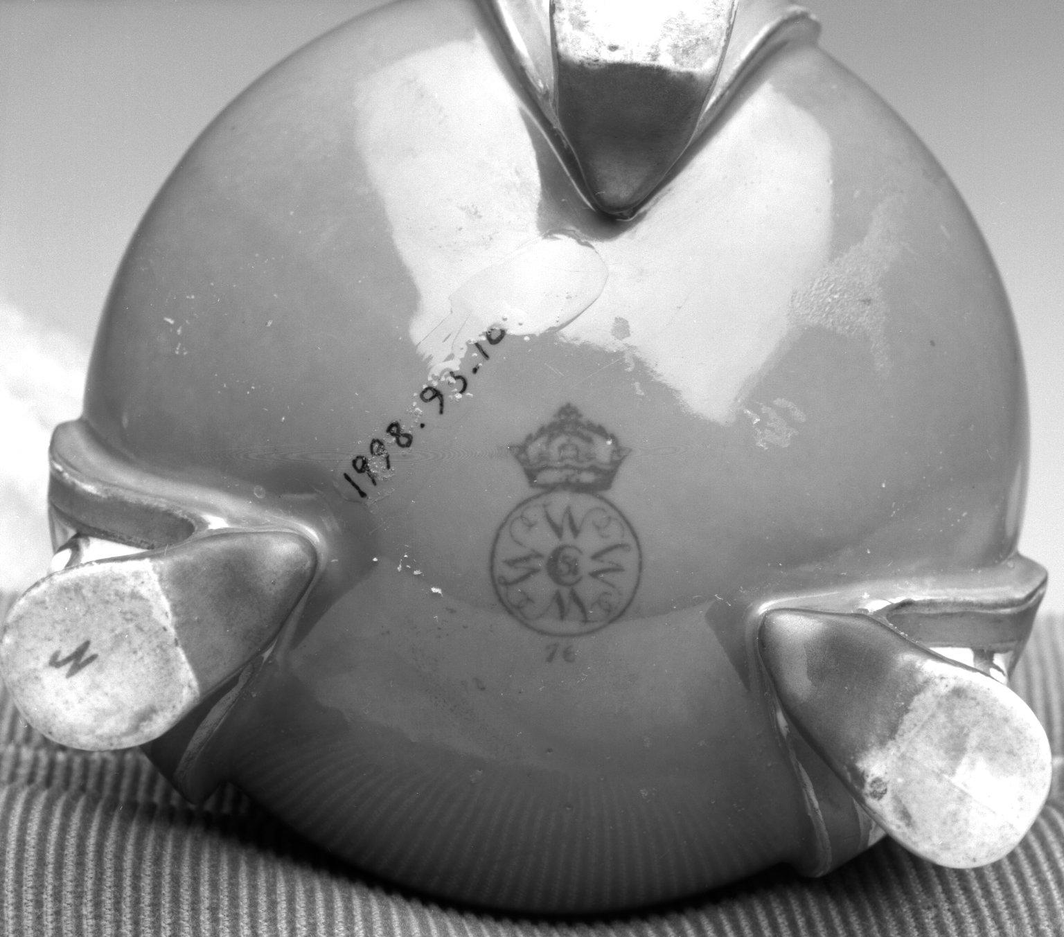 on bottom: transfer-printed in brown is the Royal Worcester logo, with "76" beneath. Hand-painted in brown underneath one foot: "N."