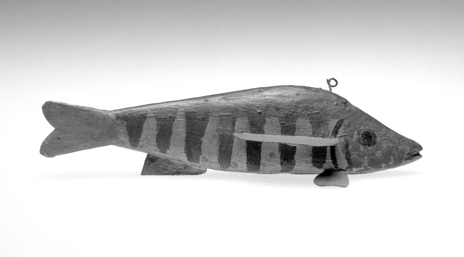 Defer Family. Fish Decoy, ca. 1920. Painted wood, metals, 2 1/2 x 8 3/4 x 2 5/8 in. (6.4 x 22.2 x 6.7 cm). Brooklyn Museum, Gift of the North American Fish Decoy Partners, 1998.148.3. (Photo: Brooklyn Museum)