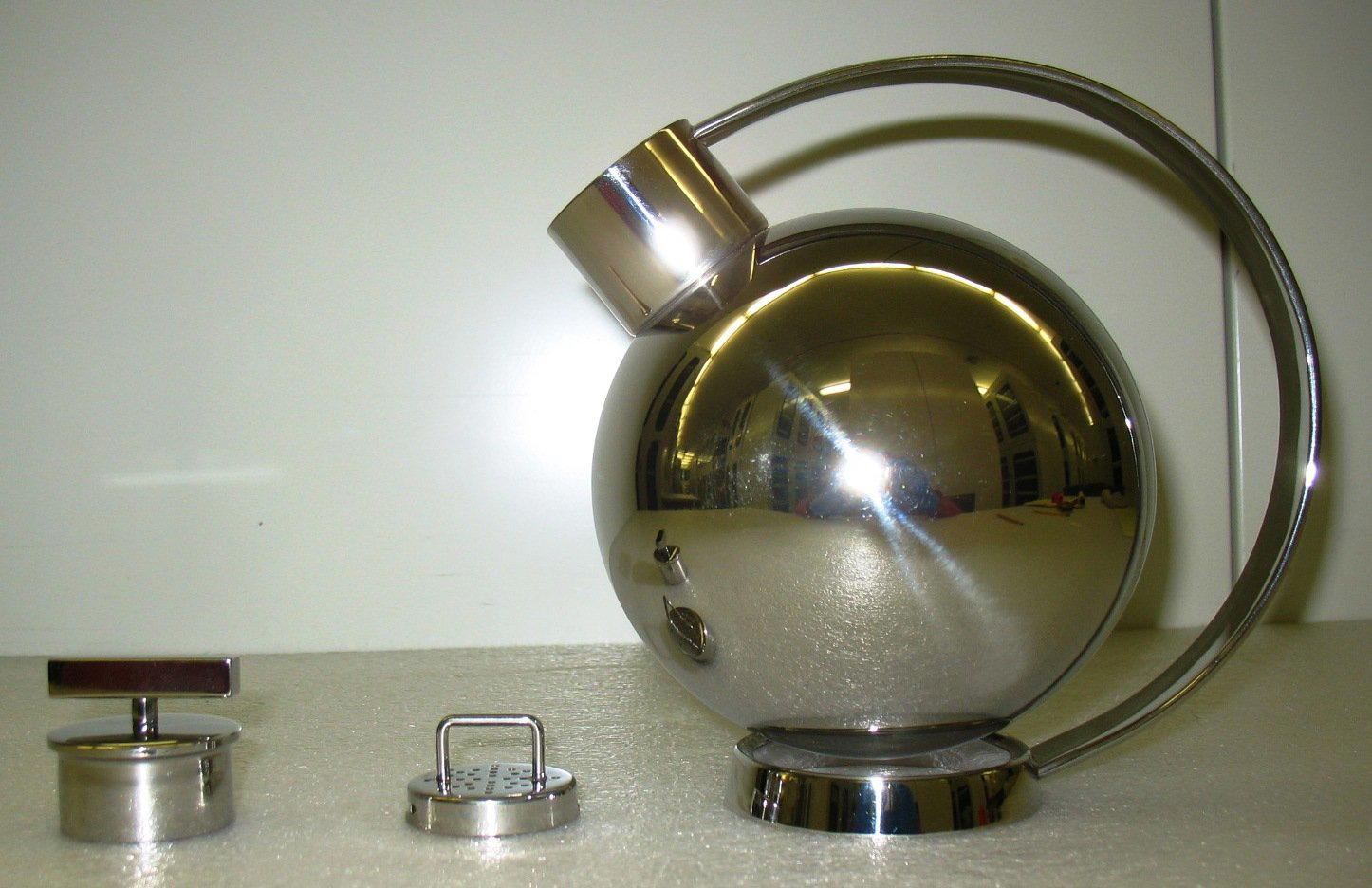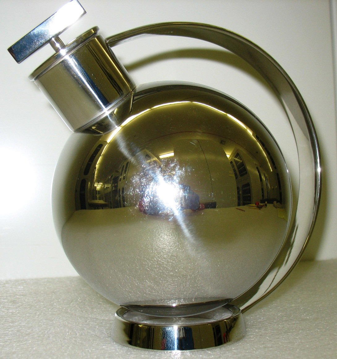 Attributed to Marianne Brandt (German, 1893–1983); Alessi (founded 1921). Cocktail Shaker, 'Anonimo,' Model 90021, ca. 1925 (designed), made by Alessi since 1989. Stainless steel, height(18.0 cm); diameter: (13.8 cm). Brooklyn Museum, Gift of Alessi S.p.A., 1999.40.1a-b. (Photo: Brooklyn Museum)