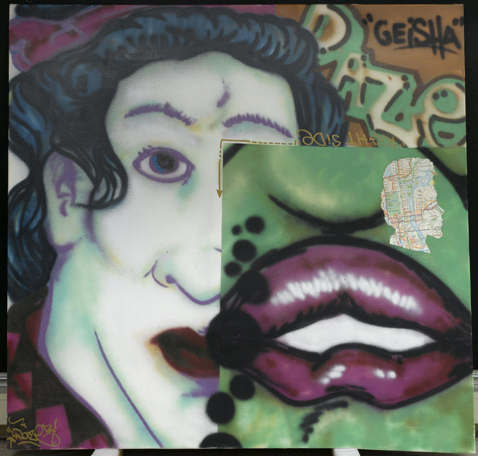 Chris Ellis aka Daze, American (born 1962). Geisha, 1984. Spray paint on canvas, 68 1/4 x 70 1/4 in. (173.4 x 178.4 cm). Brooklyn Museum, Gift of Carroll Janis and Conrad Janis, 2006.24. © Chris Ellis aka Daze. (Photo: Brooklyn Museum)