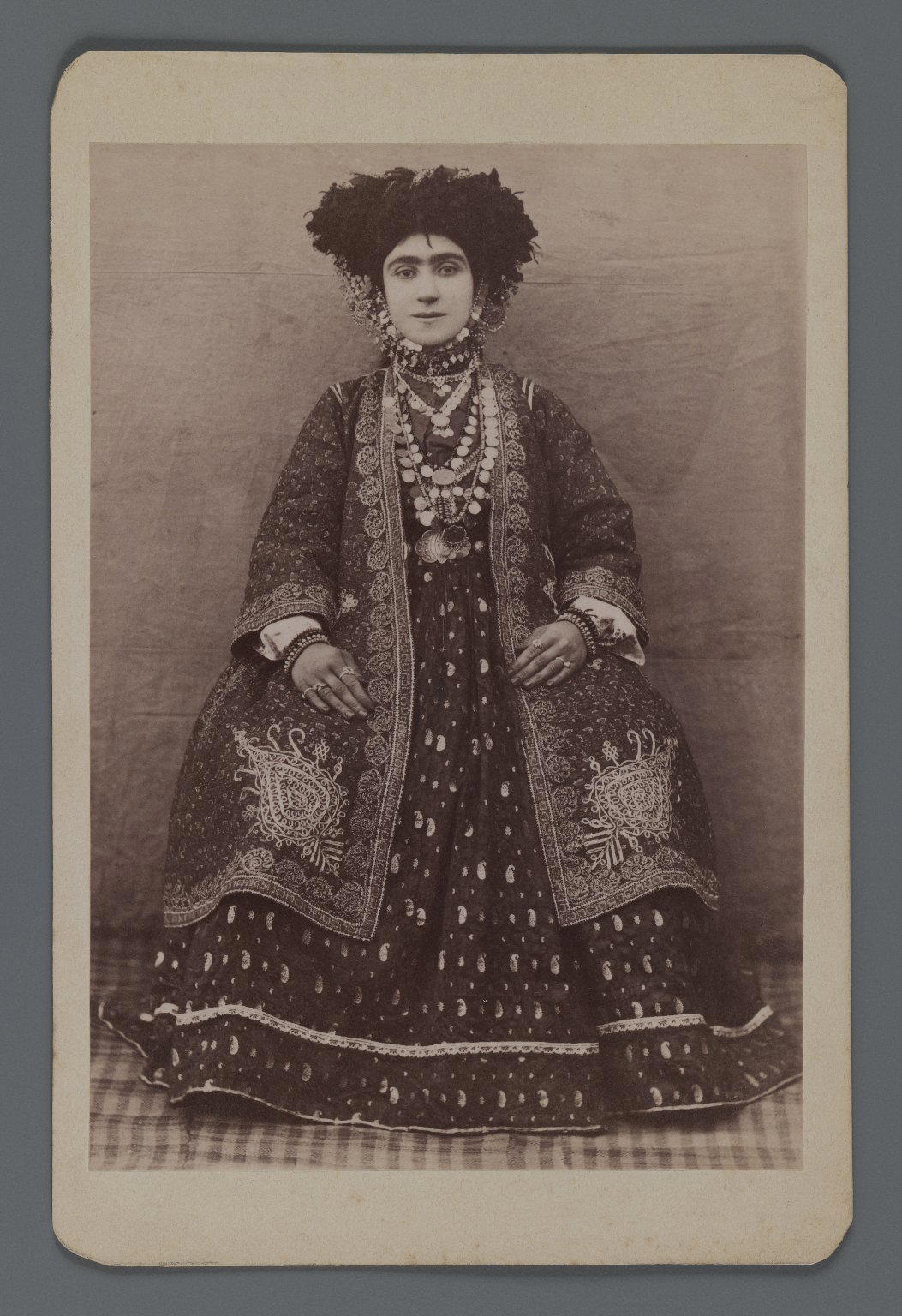 Female Member of a Tribal Khan's Family, One of 274 Vintage Photographs, late 19th–early 20th century. Albumen silver photograph, photo: 5 1/2 x 3 13/16 in. (14.0 x 9.7 cm); mat: 6 1/2 x 4 1/4 in. (16.5 x 10.9 cm). Brooklyn Museum, Purchase gift of Leona Soudavar in memory of Ahmad Soudavar, 1997.3.40. (Photo: Brooklyn Museum)