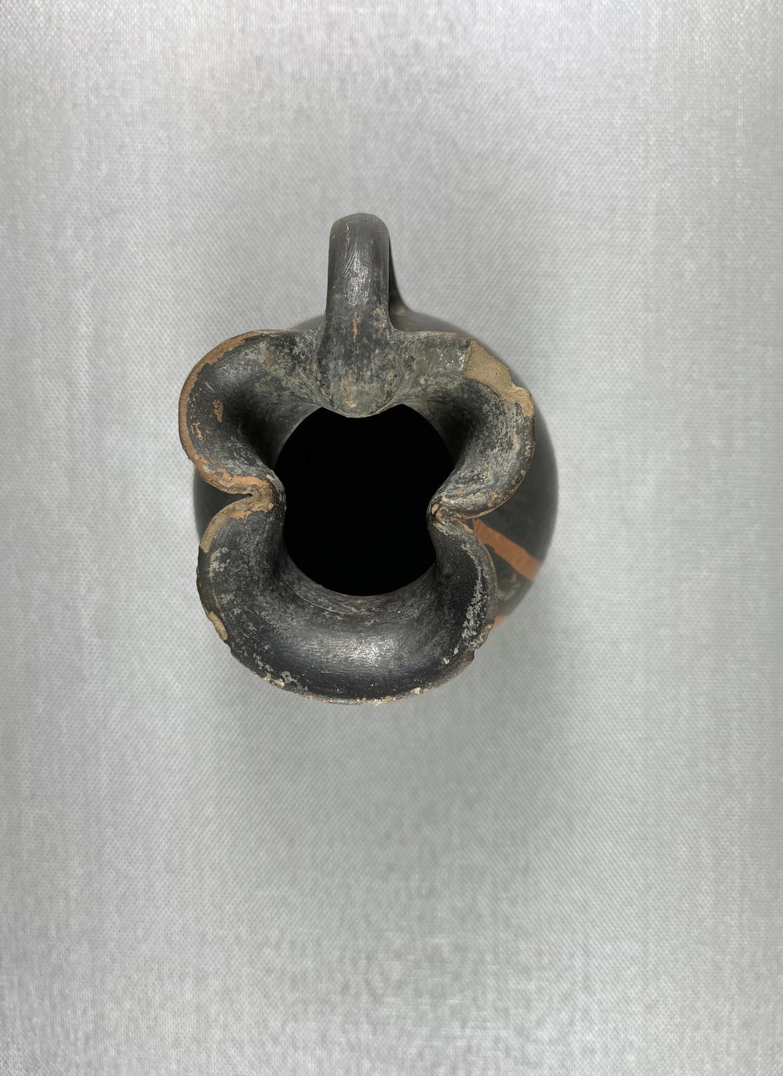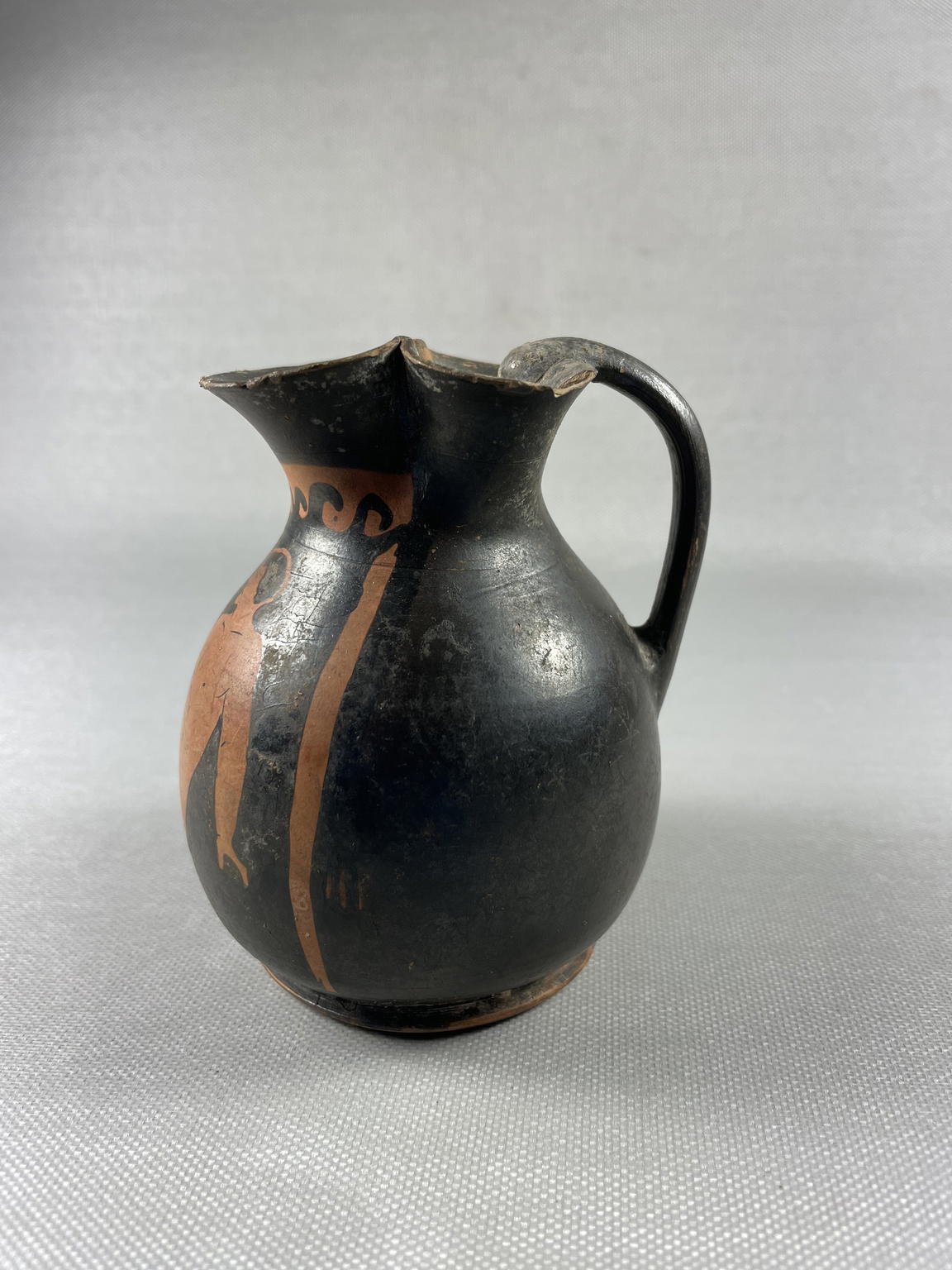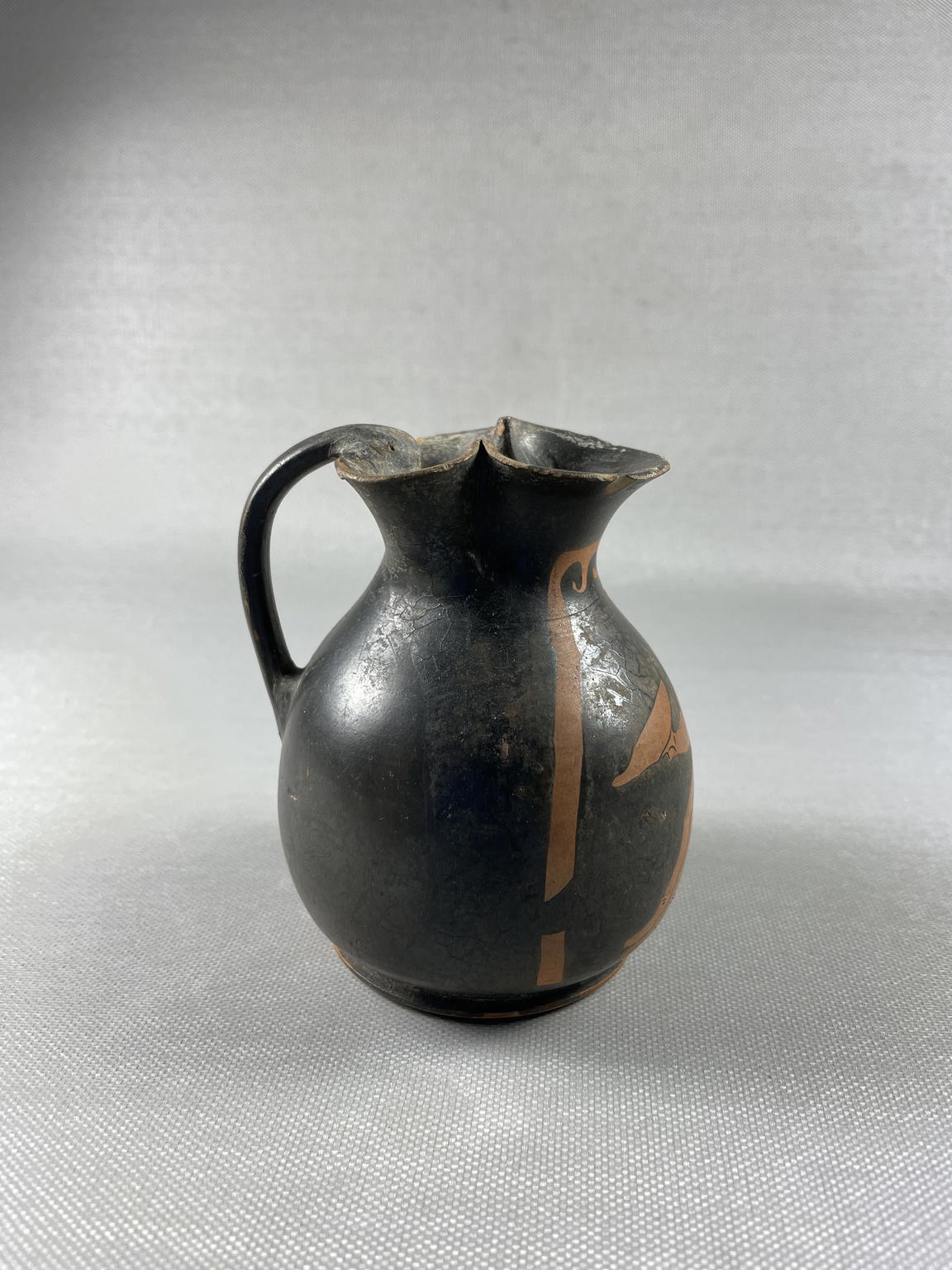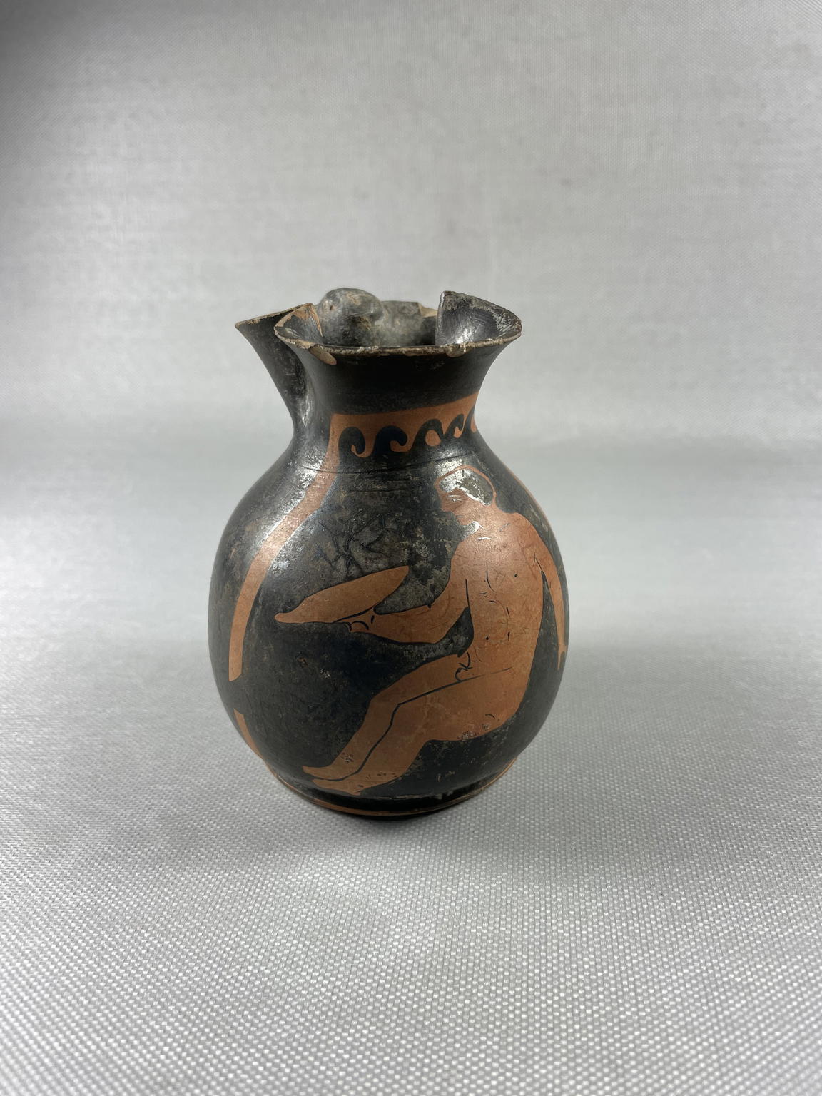 Italiote; Greek. Red-Figure Oinochoe, 4th century B.C.E.. Clay, slip, 3 15/16 × Diam. 3 1/8 in. (10 × 7.9 cm). Brooklyn Museum, Gift of Carll H. de Silver, 03.283. (Photo: Brooklyn Museum)