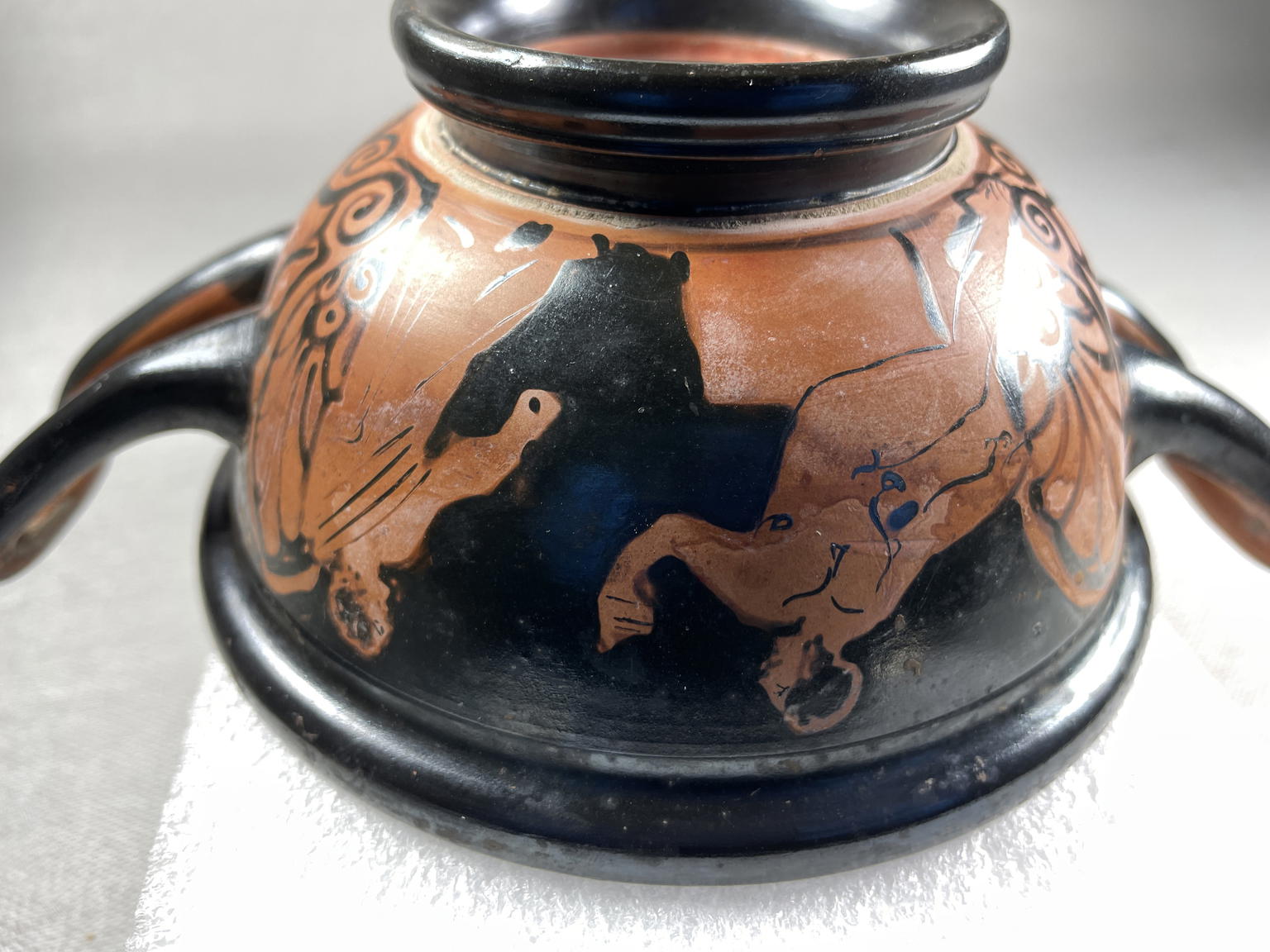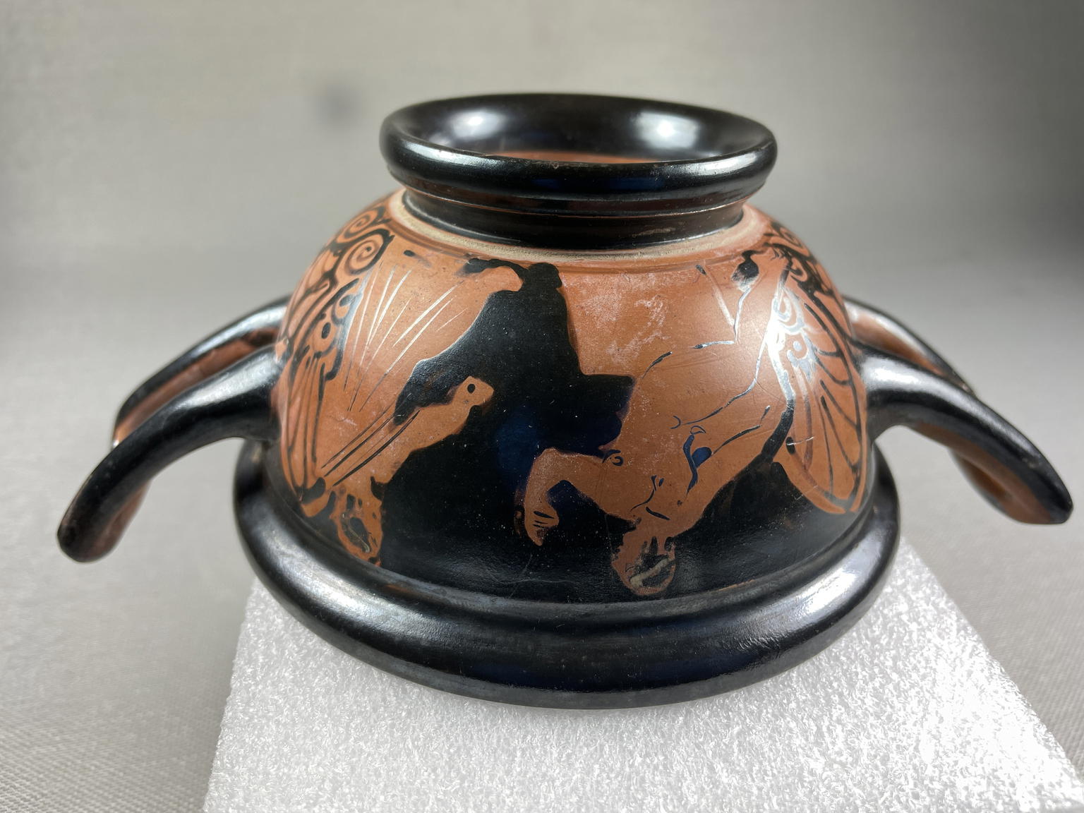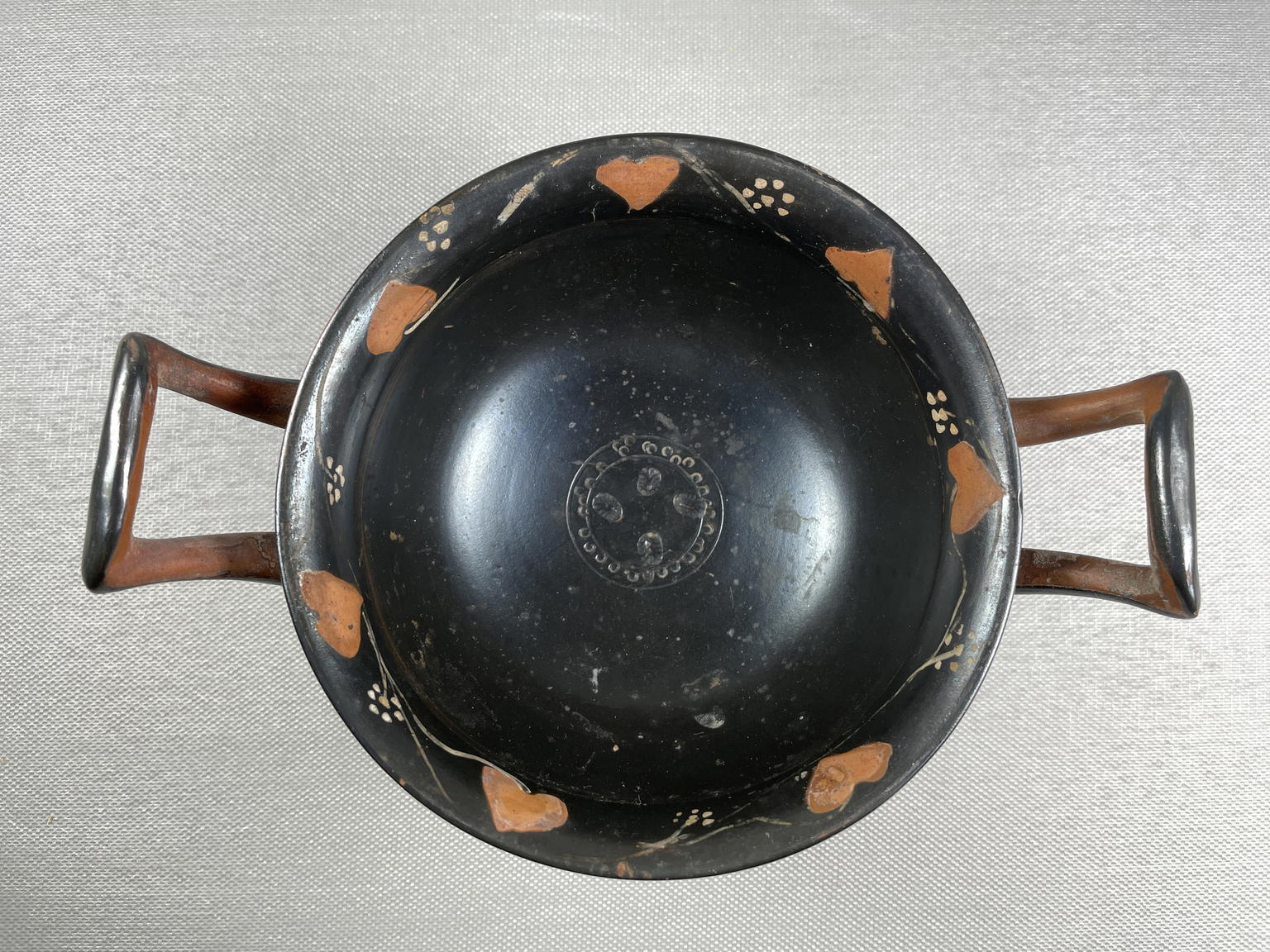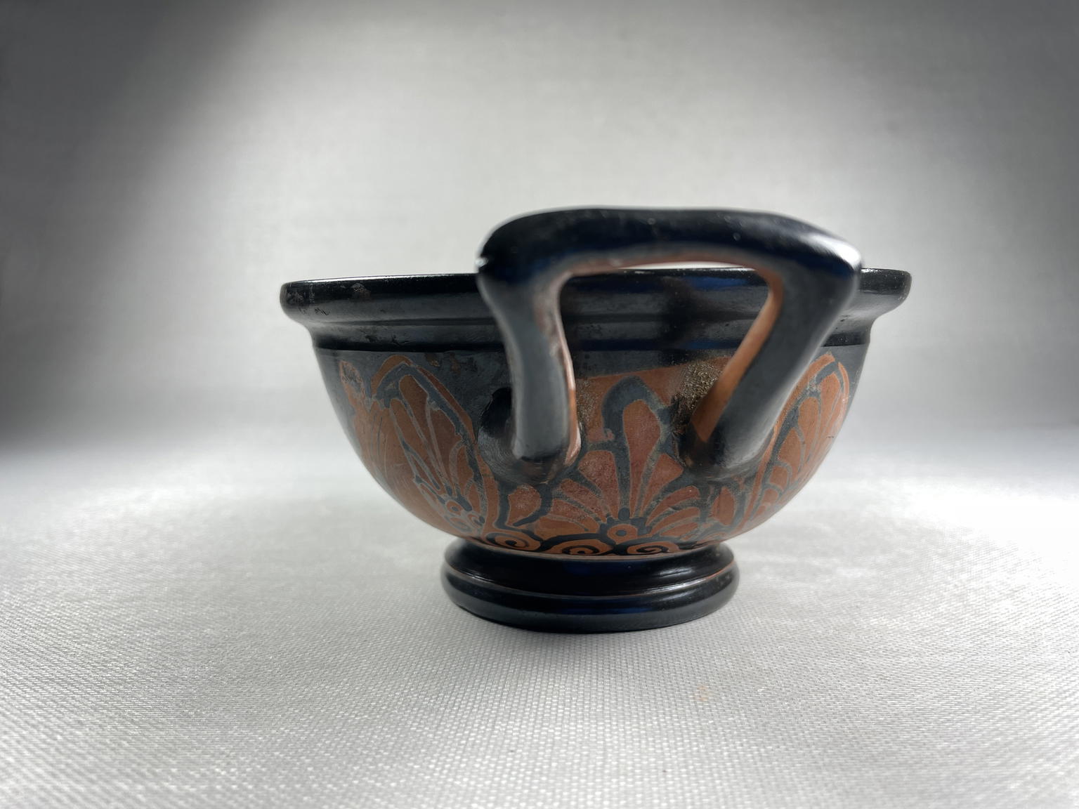 Greek; Attic. Red-Figure Skyphos or Kotyle, ca. 400 B.C.E.. Clay, slip, 3 9/16 × 5 1/16 × 7 1/2 in. (9 × 12.8 × 19 cm). Brooklyn Museum, Gift of Robert B. Woodward, 03.284. (Photo: Brooklyn Museum)