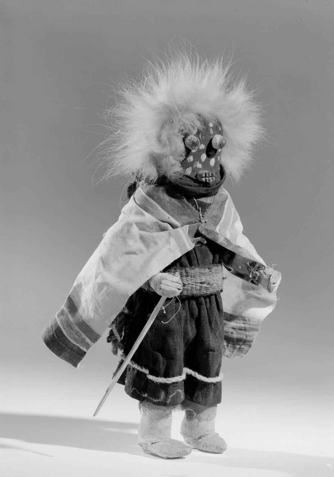 A:shiwi (Zuni Pueblo). Kachina Doll (Atashlaskja Okya), late 19th century. Wood, pigment, feather, cotton cloth, hide, 9 15/16 x 4 3/4 in. (25.2 x 12.1 cm). Brooklyn Museum, Museum Expedition 1903, Museum Collection Fund, 03.325.4635. (Photo: Brooklyn Museum)