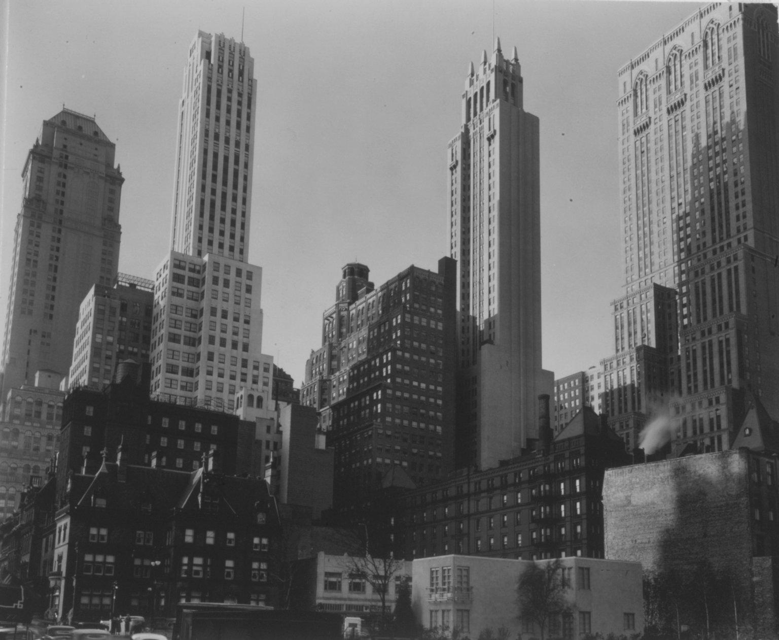 Berenice Abbott (American, 1898–1991). Park Avenue and 39th Street, 1936. Gelatin silver print, 7 1/4 x 9 in. (18.4 x 22.9 cm). Brooklyn Museum, Gift of the Prints and Photographs Council, Howard Greenberg, and Michael and Georgia de Havenon in honor of Barbara Head Millstein, 2003.36.