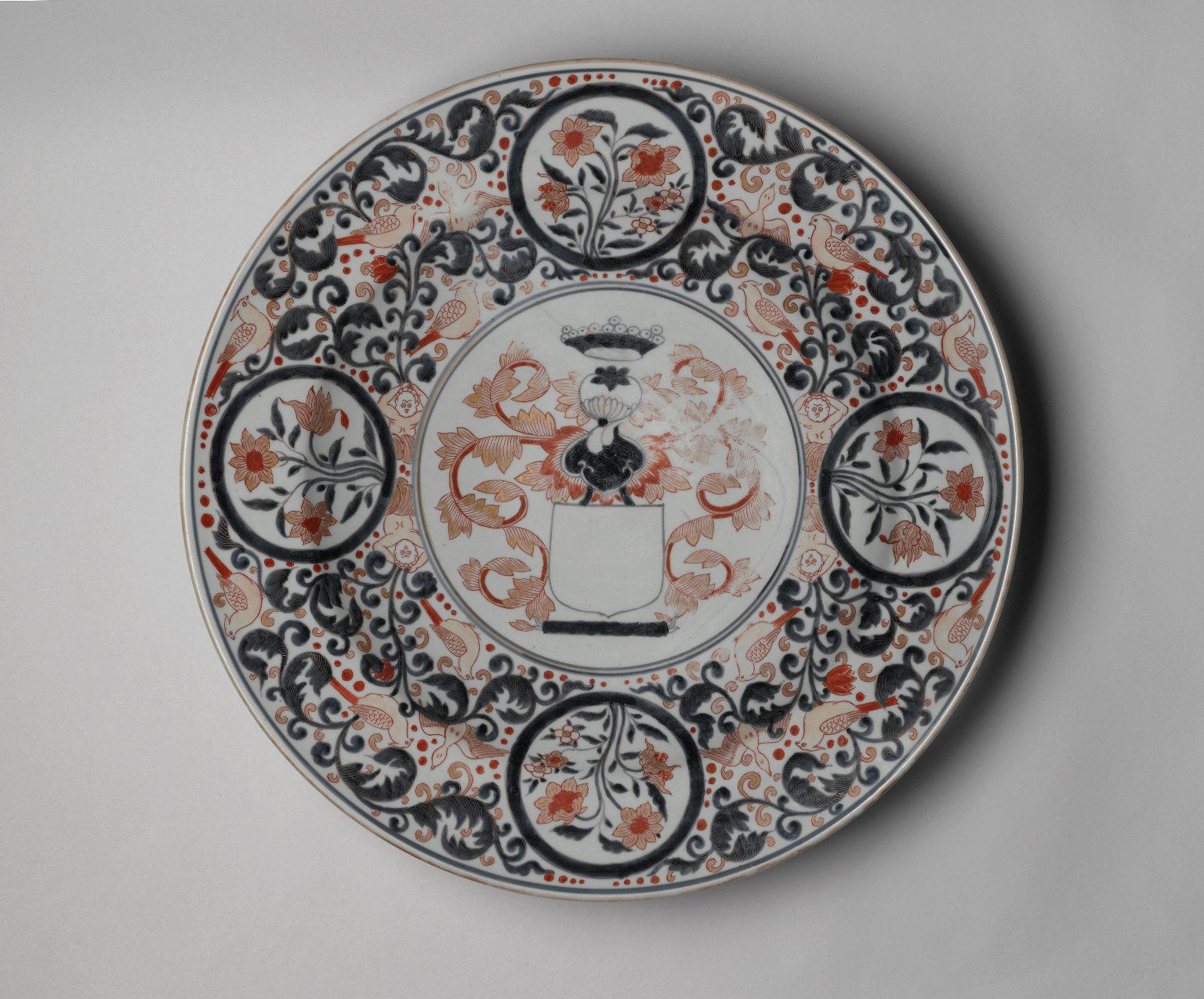 Armorial Plate, late 17th–early 18th century. Arita ware. Porcelain with underglaze blue and overglaze enamel decoration, height: 3 9/16 in. (9 cm); diameter: 21 3/4 in. (55.2 cm). Brooklyn Museum, The Peggy N. and Roger G. Gerry Collection, 2004.28.249. (Photo: Brooklyn Museum)