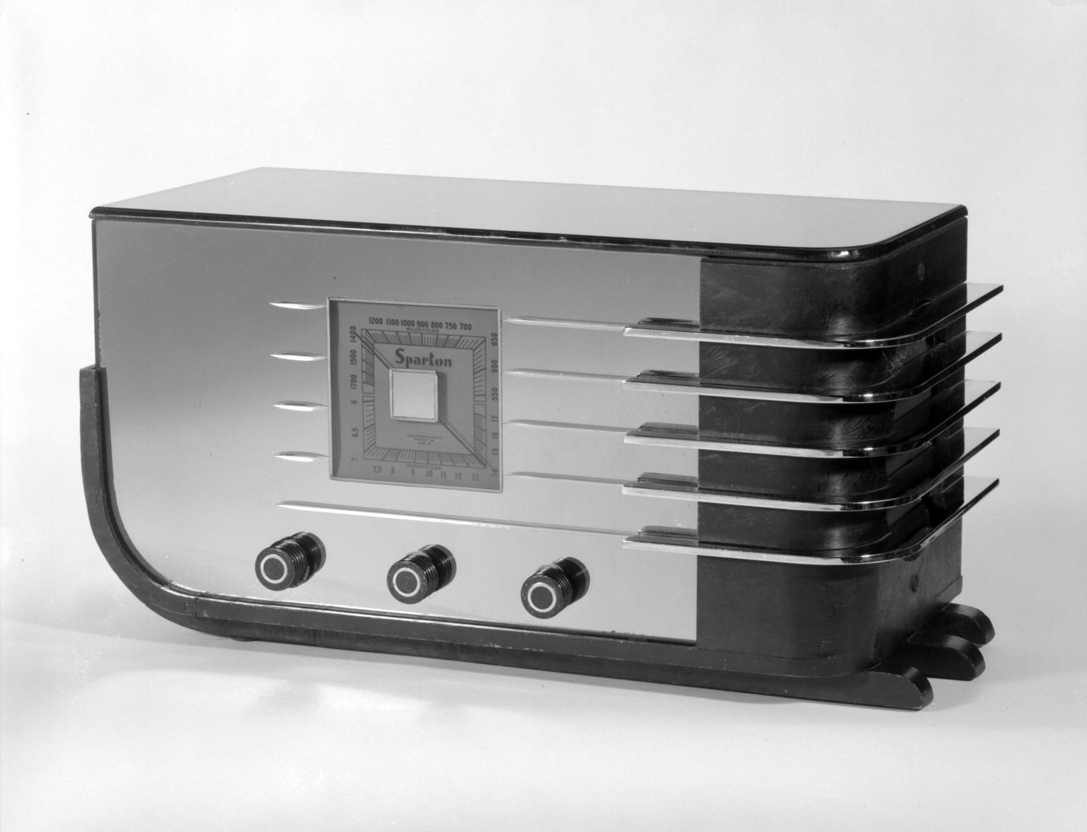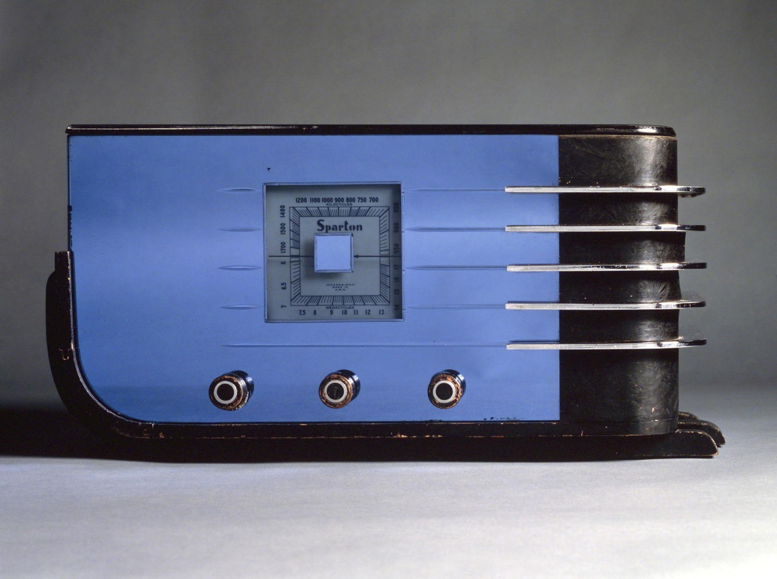 Walter Dorwin Teague (American, 1883–1960). Sparton Table Radio, ca. 1936. Glass, metal, wood, rubber, 8 3/4 x 17 1/2 x 8 3/8 in. (22.2 x 44.5 x 21.3 cm). Brooklyn Museum, Purchased with funds given by the Walter Foundation, 83.158. (Photo: Brooklyn Museum)