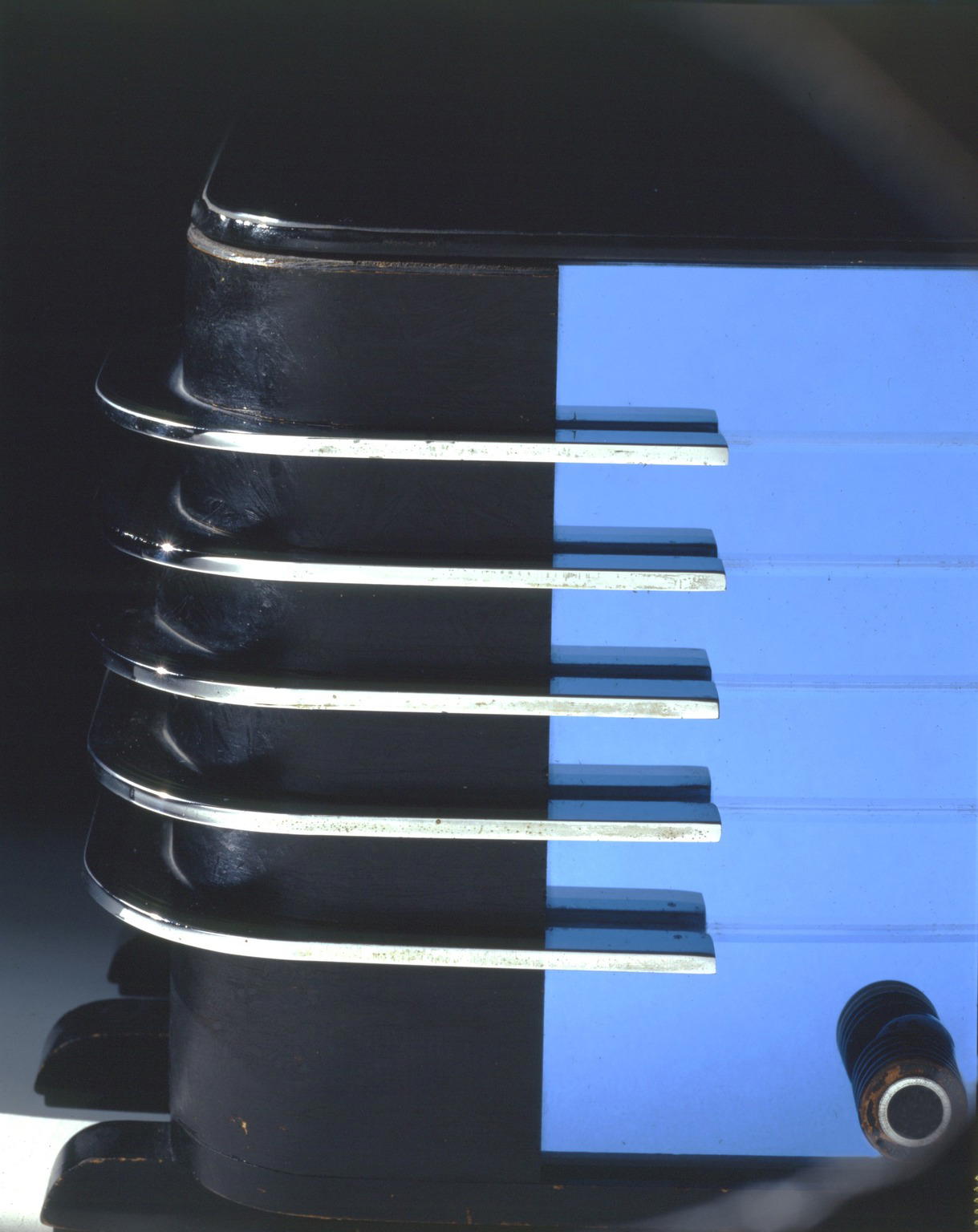 Wow indeed! Walter Dorwin Teague designed several reflective blue radios that embodied this machine aesthetic! He was also one of the most successful American industrial designers having worked with Kodak, Corning, and even Boeing.Just as the radio brought news of the public world into the private family home, this radio would have brought the machine aesthetic, first seen in factories and public spaces, into a domestic setting.Please tell me about this radio.