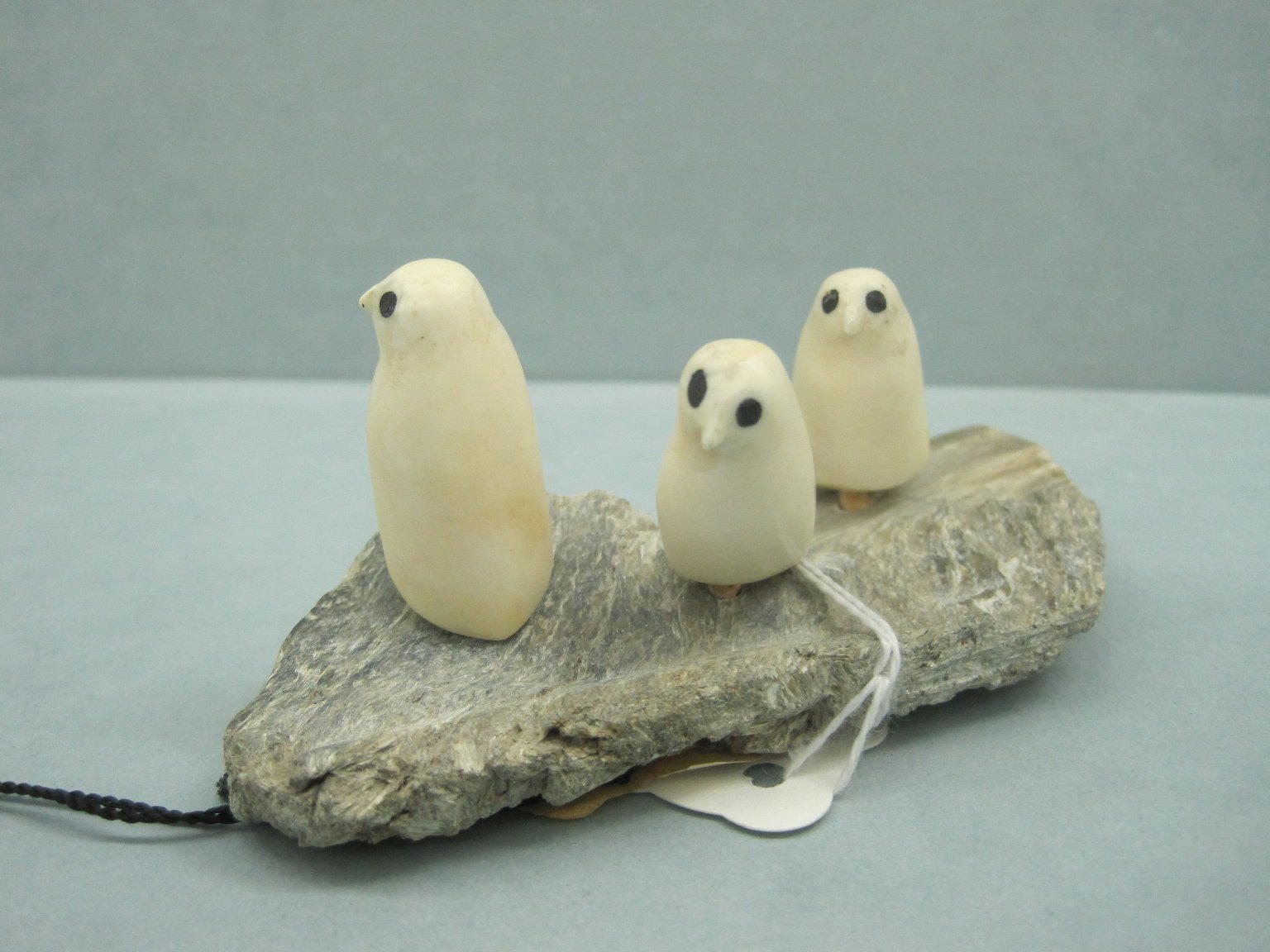Inuit. Scene with Three Abstract Birds, 1950–1980. Ivory, stone, pigment, wood, 1 3/4 x 3 7/8 x 1 5/8 in. (4.4 x 9.8 x 4.1 cm). Brooklyn Museum, Hilda and Al Schein Collection, 2004.79.57. (Photo: Brooklyn Museum)