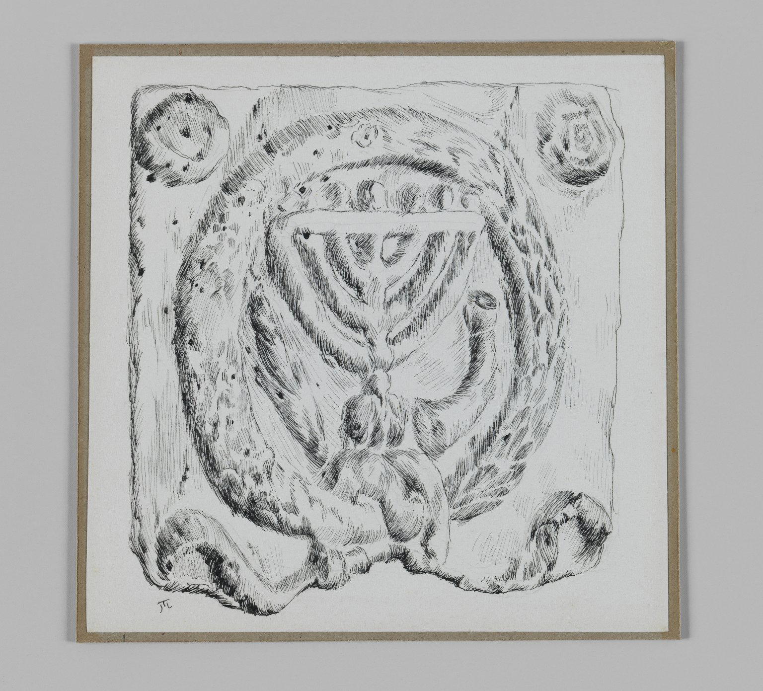 James Tissot (Nantes, France, 1836–1902, Chenecey–Buillon, France). Judaic Ornament (Menorah), 1886–1887 or 1889. Pen and ink on paper mounted on board, Sheet: 4 15/16 x 5 1/16 in. (12.6 x 12.8 cm) Mount: 5 3/16 x 5 1/4 in. (13.2 x 13.3 cm). Brooklyn Museum, Purchased by public subscription, 00.159.366.4. (Photo: Brooklyn Museum)