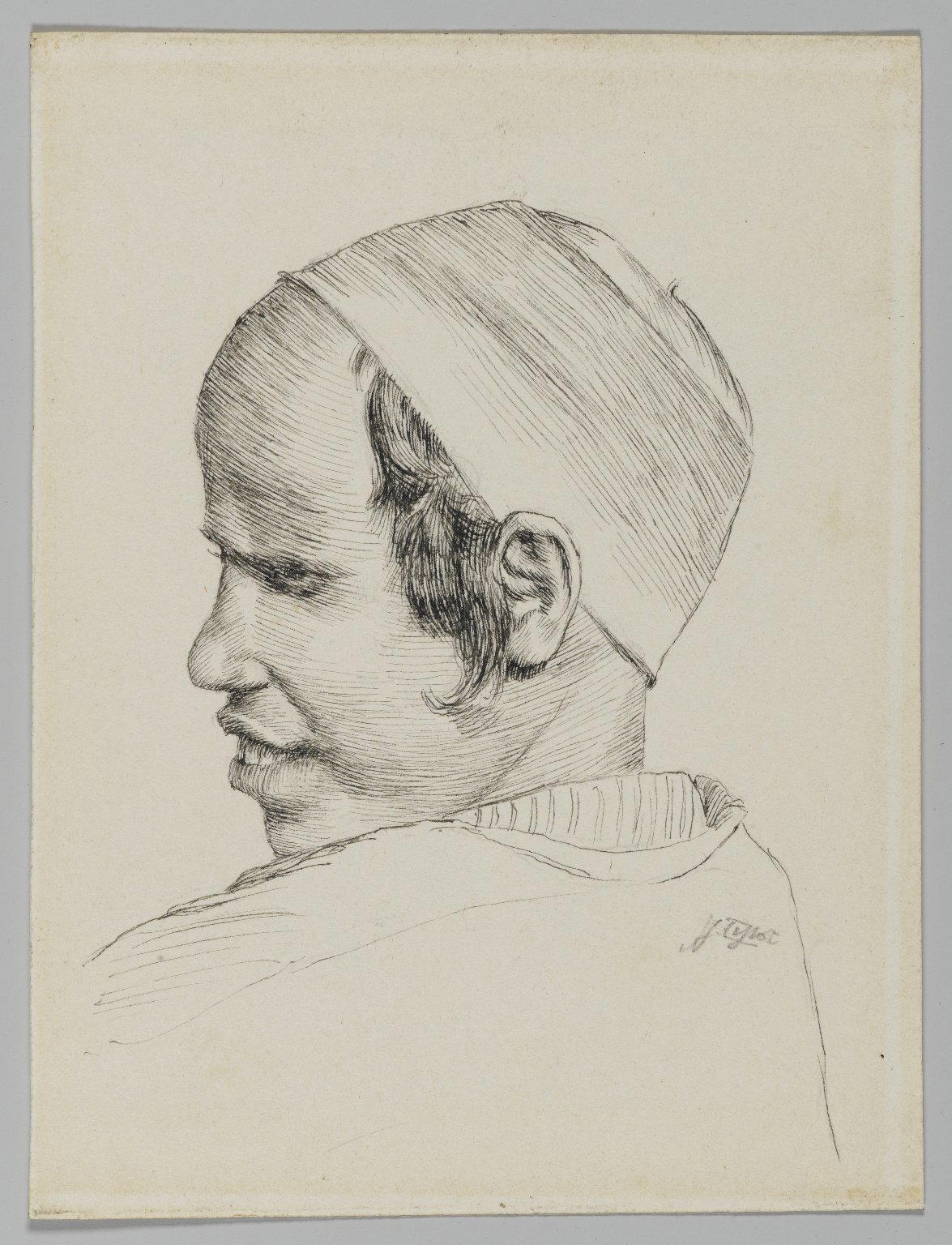 James Tissot (Nantes, France, 1836–1902, Chenecey–Buillon, France). Jews and Yemenites, Jerusalem, 1886–1887 or 1889. Ink on paper mounted on board, Sheet: 4 11/16 x 3 9/16 in. (11.9 x 9 cm). Brooklyn Museum, Purchased by public subscription, 00.159.427.2. (Photo: Brooklyn Museum)
