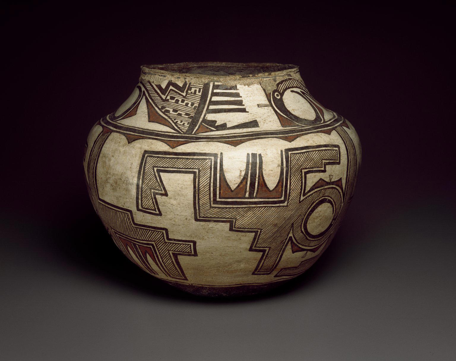 A:shiwi (Zuni Pueblo). Water Jar (Tai-lai), late 19th–early 20th century. Ceramic, pigment, 11 x 14 in. (29.0 x 36.0 cm). Brooklyn Museum, Museum Expedition 1904, Museum Collection Fund, 04.297.5248. (Photo: Brooklyn Museum)