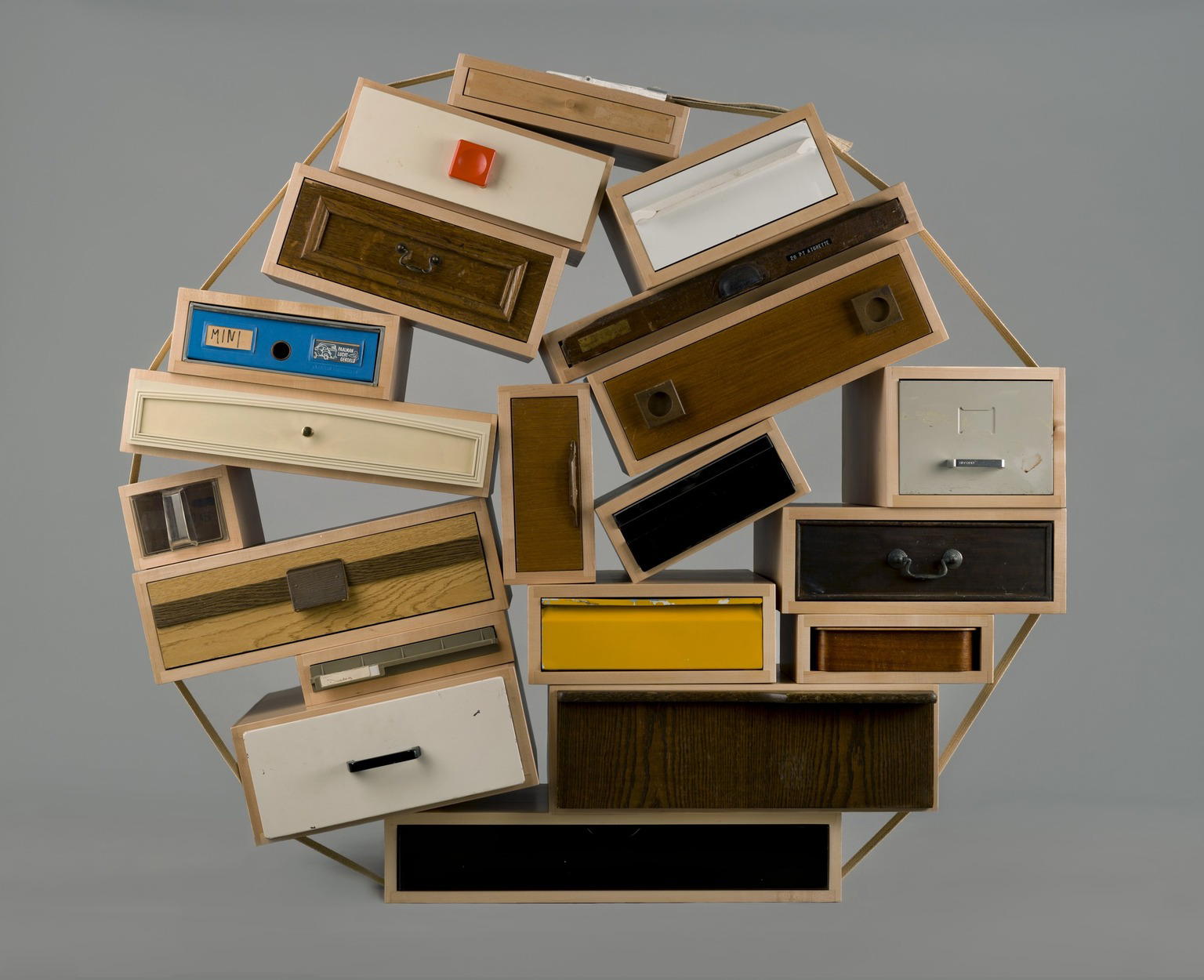Tejo Remy (Dutch, born 1960); Droog Design (Dutch, founded 1993). Chest of Drawers, "You Can't Lay Down Your Memories," edition number 45, designed 1991; made 2005. Maple, other woods, painted and unpainted metals, plastic, paper, textile, 60 x 60 x 30 in. (152.4 x 152.4 x 76.2 cm). Brooklyn Museum, Gift of Joseph F. McCrindle in memory of J. Fuller Feder, by exchange, 2005.36. © Droog Design. (Photo: Brooklyn Museum)